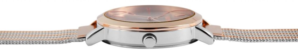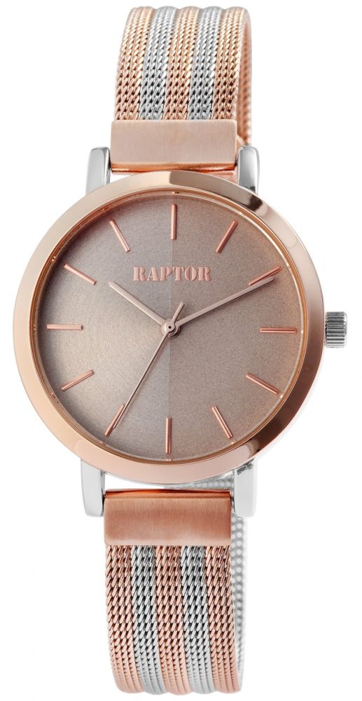 O relógio de pulso feminino analógico de 3 ponteiros da Raptor possui um movimento de quartzo de alta qualidade. A bracelete milanesa em aço inoxidável tem 14 mm de largura na alça e pode ser aberta e fechada usando um fecho de gancho em aço inoxidável com barra de segurança. Graças ao fecho ajustável, o comprimento do relógio pode ser ajustado individualmente a qualquer circunferência do pulso. O comprimento total é de 22 cm. A caixa do relógio feita de metal tem um diâmetro de 34 mm e uma altura de 8 mm. O que chama a atenção no modelo simples é o mostrador, que é visualmente dividido por uma linha vertical. A divisão da caixa é muito simples e a cor combina com o mostrador do relógio e a bracelete, para que a imagem geral seja harmoniosamente arredondada.