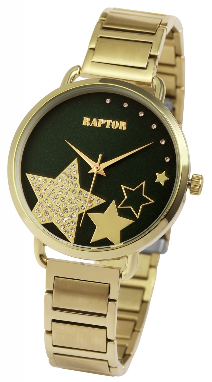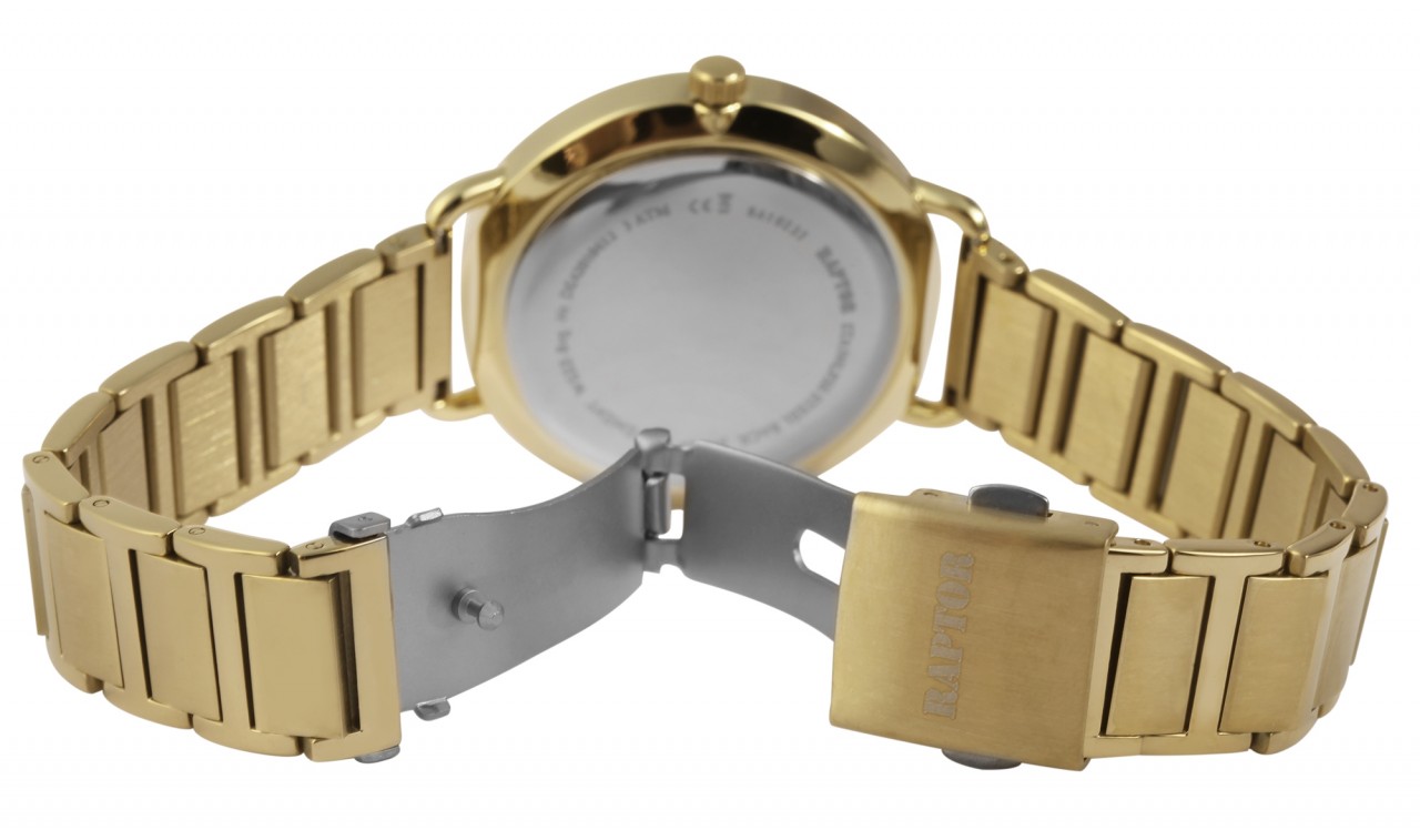 O relógio de pulso feminino analógico de 3 ponteiros da Raptor possui um movimento de quartzo de alta qualidade. A pulseira em aço inoxidável tem 16 mm de largura nas alças e pode ser aberta e fechada com um fecho dobrável em aço inoxidável. O comprimento total do relógio é de 22 cm. A caixa de metal com vidro mineral tem um diâmetro de 39 mm e uma altura de 8 mm. O fundo da caixa é feito de aço inoxidável. O relógio também possui resistência à água de 3 ATM.