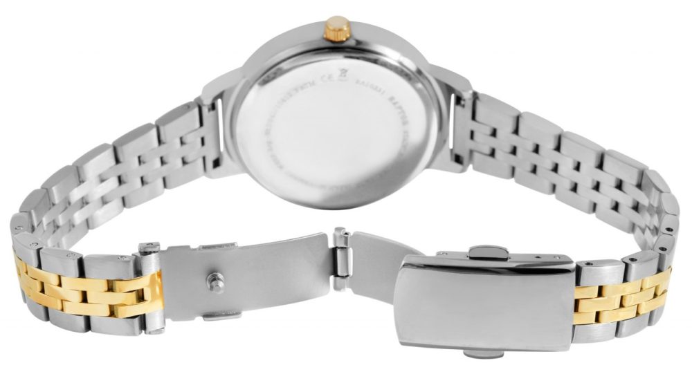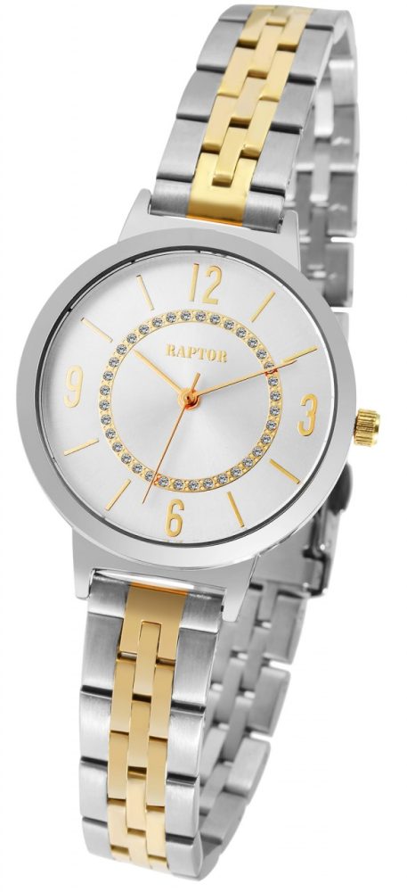 O relógio de pulso feminino analógico de 3 ponteiros da marca Raptor possui o movimento de quartzo Miyota 2035 de alta qualidade e preciso. A pulseira de elos de aço inoxidável tem 14 mm de largura na alça e pode ser aberta e fechada com um fecho dobrável de aço inoxidável. O comprimento total é de 23 cm. A pulseira do relógio é particularmente robusta e durável e pode ser encurtada conforme desejado usando uma ferramenta adequada, graças aos elementos removíveis. A combinação de elementos mate e brilhantes do relógio fazem do relógio um acessório especial. A caixa de aço inoxidável com vidro mineral tem um diâmetro de 36 mm e uma altura de 9 mm. O fundo da caixa também é feito de aço inoxidável e o relógio tem resistência à água de 3 ATM.