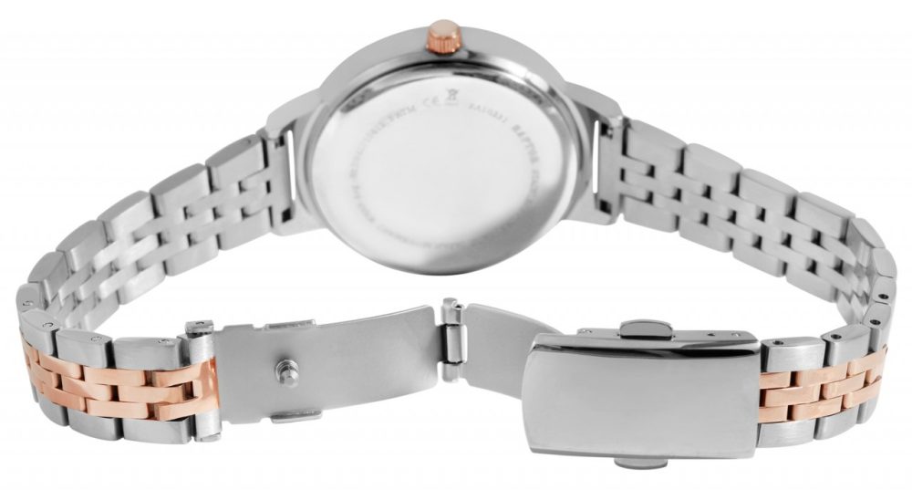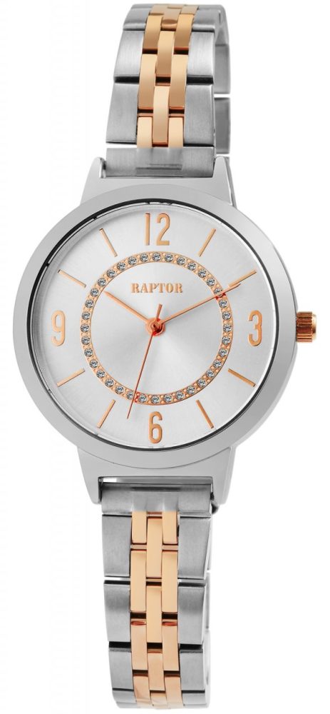 O relógio de pulso feminino analógico de 3 ponteiros da marca Raptor possui o movimento de quartzo Miyota 2035 de alta qualidade e preciso. A pulseira de elos de aço inoxidável tem 14 mm de largura na alça e pode ser aberta e fechada com um fecho dobrável de aço inoxidável. O comprimento total é de 23 cm. A pulseira do relógio é particularmente robusta e durável e pode ser encurtada conforme desejado usando uma ferramenta adequada, graças aos elementos removíveis. A combinação de elementos mate e brilhantes do relógio fazem do relógio um acessório especial. A caixa de aço inoxidável com vidro mineral tem um diâmetro de 36 mm e uma altura de 9 mm. O fundo da caixa também é feito de aço inoxidável e o relógio tem resistência à água de 3 ATM.