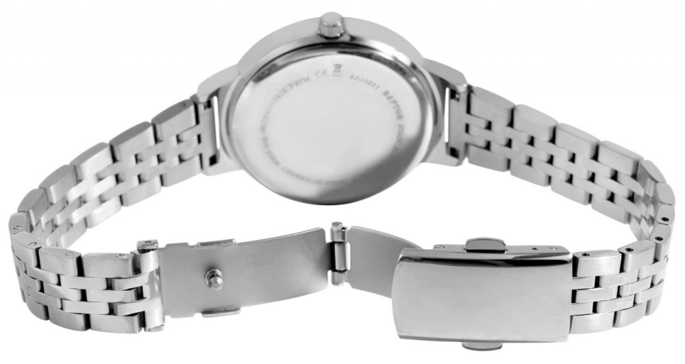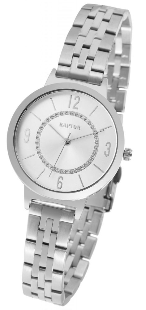 O relógio de pulso feminino analógico de 3 ponteiros da marca Raptor possui o movimento de quartzo Miyota 2035 de alta qualidade e preciso. A bracelete de elos de aço inoxidável tem 14 mm de largura na alça e pode ser aberta e fechada com um fecho dobrável de aço inoxidável. O comprimento total é de 23 cm. A pulseira do relógio é particularmente robusta e durável e pode ser encurtada conforme desejado usando uma ferramenta adequada, graças aos elementos removíveis. A combinação de elementos mate e brilhantes do relógio fazem do relógio um acessório especial. A caixa de aço inoxidável com vidro mineral tem um diâmetro de 36 mm e uma altura de 9 mm. O fundo da caixa também é feito de aço inoxidável e o relógio tem resistência à água de 3 ATM.
