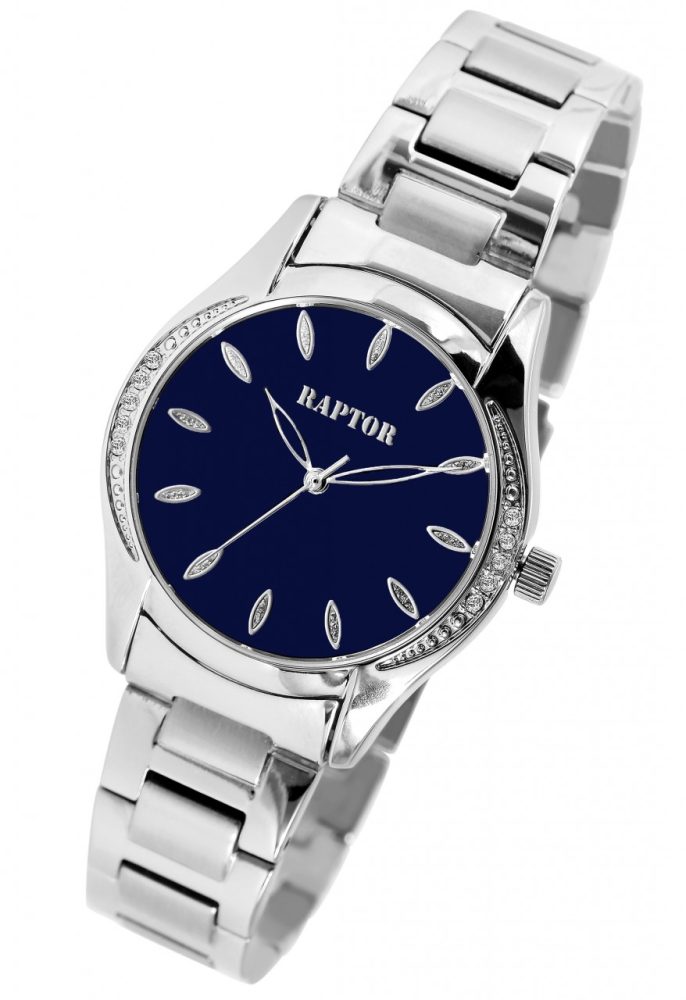 O relógio de pulso feminino analógico de 3 ponteiros da Raptor possui um movimento de quartzo de alta qualidade. A bracelete de aço inoxidável tem uma largura de 16 mm e pode ser aberta e fechada com um fecho dobrável. O comprimento total do relógio é de 18 cm. A caixa de metal com vidro mineral tem um diâmetro de 32 mm e uma altura de 10 mm. O fundo da caixa é feito de aço inoxidável e o relógio tem resistência à água de 3 bar. O mostrador é claro e simples. Pedras semelhantes em forma de folha servem como índices de pontos, que também são refletidos na caixa do relógio. Os ponteiros e índices têm a mesma cor da caixa e assim completam a aparência geral harmoniosa do relógio. Como acessórios do seu produto, você receberá um cartão de garantia e uma caixa original da marca Raptor.