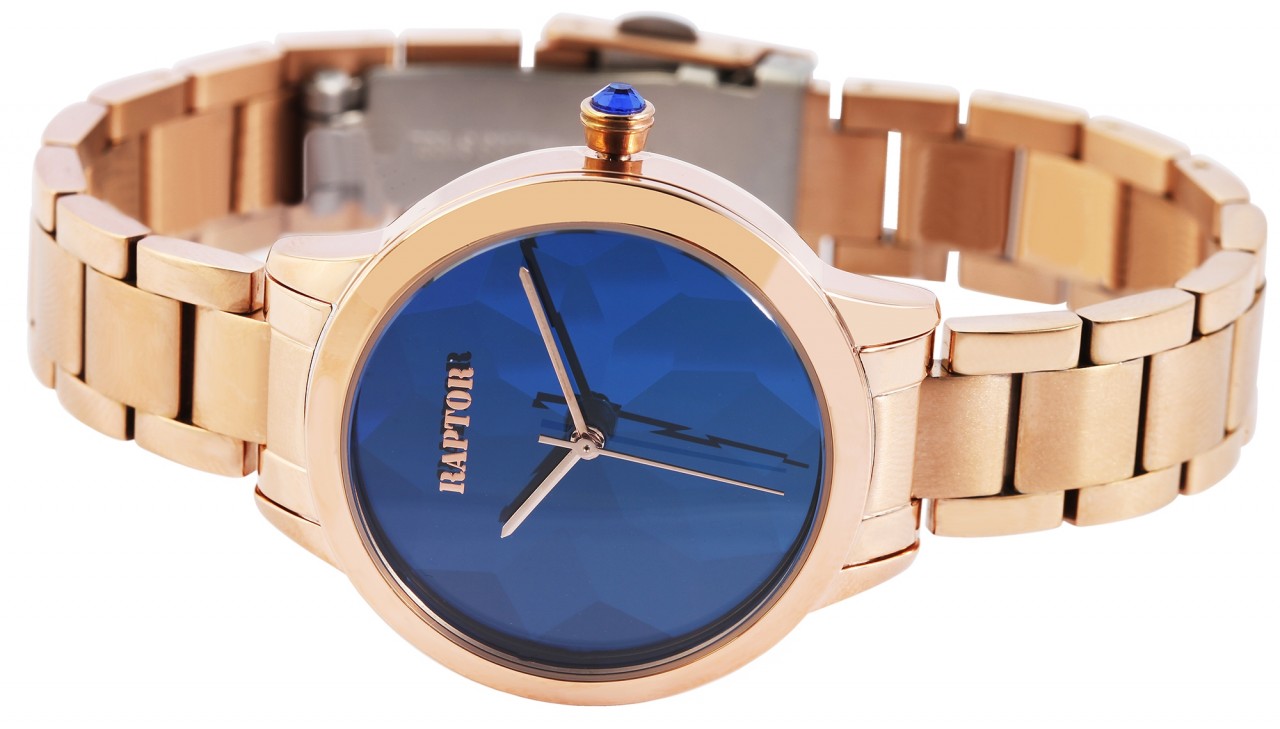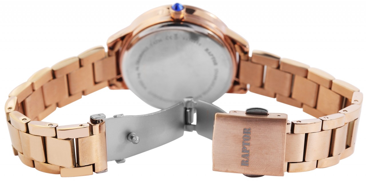 O relógio de pulso feminino analógico da marca Raptor “Twinkle” possui o movimento de quartzo alta qualidade. A bracelete de aço inoxidável tem 14 mm de largura. O relógio tem comprimento total de 20.5 cm. A caixa de aço inoxidável está equipada com vidro mineral. Mede 34 mm de diâmetro 12 mm de altura. O fundo da caixa é feito de aço inoxidável.