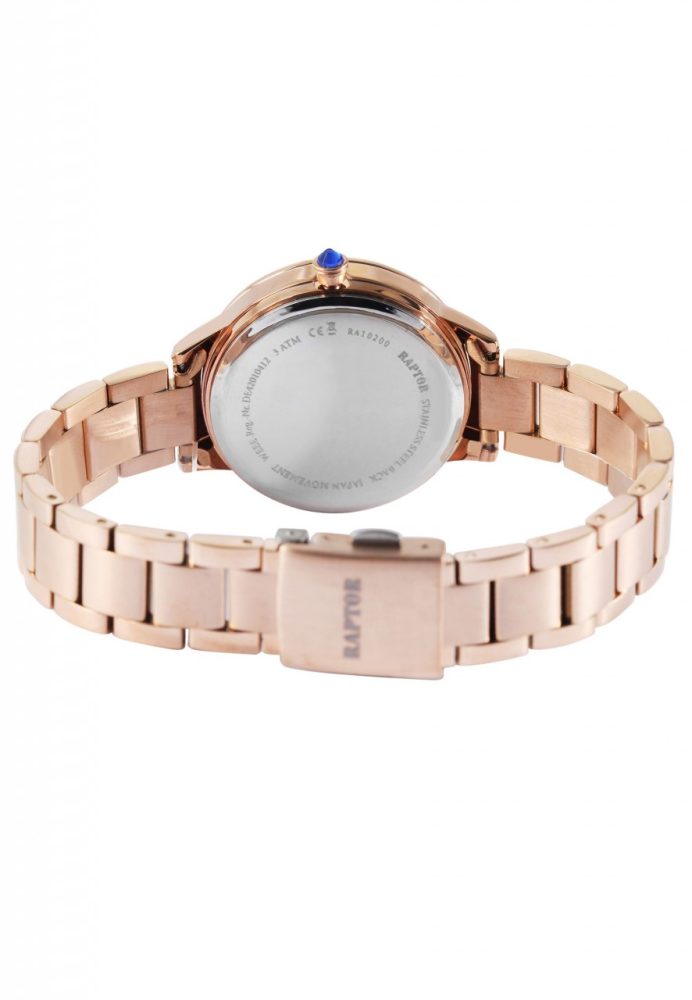 O relógio de pulso feminino analógico da marca Raptor “Twinkle” possui o movimento de quartzo alta qualidade. A bracelete de aço inoxidável tem 14 mm de largura. O relógio tem comprimento total de 20.5 cm. A caixa de aço inoxidável está equipada com vidro mineral. Mede 34 mm de diâmetro 12 mm de altura. O fundo da caixa é feito de aço inoxidável.