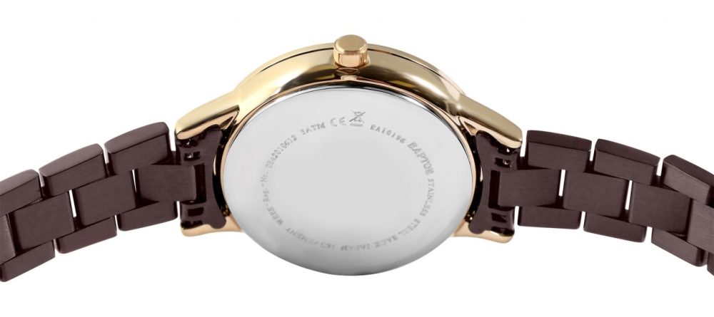O relógio de pulso feminino analógico de 3 ponteiros da marca Raptor possui o movimento de quartzo Miyota Y120 de alta qualidade. A bracelete em aço inoxidável tem 14 mm de largura na alça e pode ser aberta e fechada com um fecho dobrável em aço inoxidável. O comprimento total do relógio é de 21 cm. A caixa de metal com vidro mineral tem um diâmetro de 34 mm e uma altura de 9 mm. Um destaque especial é o mostrador, que apresenta uma fina onda de pedras brilhantes que o atravessam. Acima da onda de glitter há strass colocados individualmente. O fundo da caixa é feito de aço inoxidável.