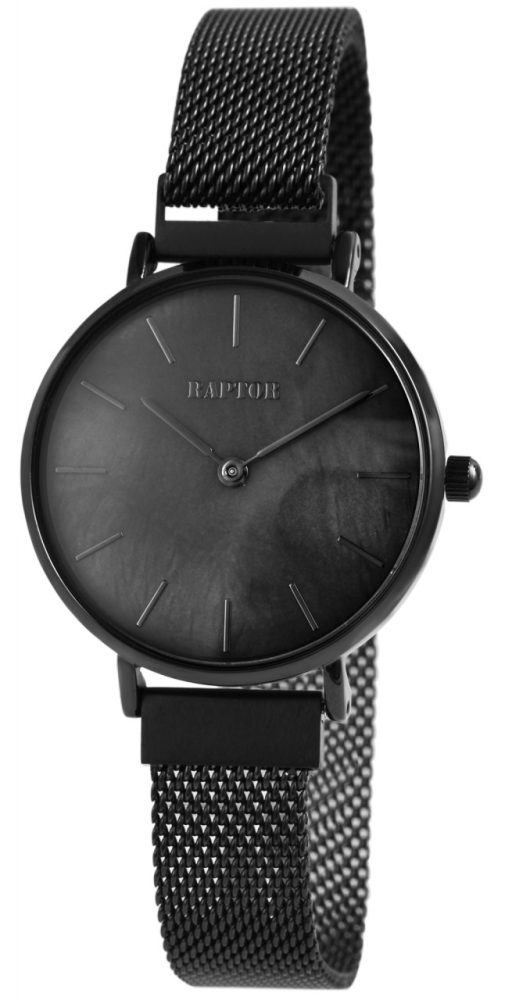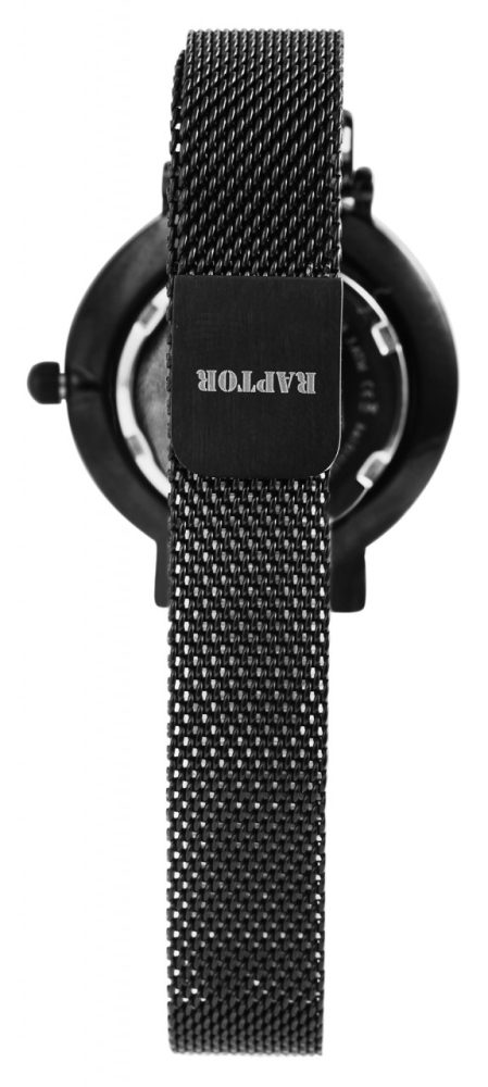 O relógio de pulso analógico feminino da marca Raptor ” Giana” possui movimento de quartzo de alta qualidade. A bracelete tem 14 mm de largura. O comprimento total do relógio é de 25 cm. A caixa de aço inoxidável com vidro mineral tem um diâmetro de 32 mm e uma altura de 8 mm. O fundo da caixa é feito de aço inoxidável e o relógio tem resistência à água de 3 ATM.