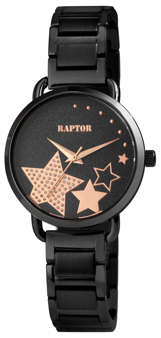 O relógio de pulso feminino analógico de 3 ponteiros da Raptor possui um movimento de quartzo de alta qualidade. A bracelete em aço inoxidável tem 14 mm de largura nas alças e pode ser aberta e fechada com um fecho dobrável em aço inoxidável. O comprimento total do relógio é de 20 cm. A caixa de aço inoxidável com vidro mineral tem um diâmetro de 33 mm e uma altura de 8,5 mm. O fundo da caixa é feito de aço inoxidável. O relógio também possui resistência à água de 3 ATM. Quando se trata de relógios femininos, o foco está no mostrador.