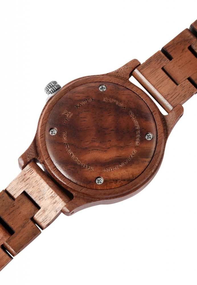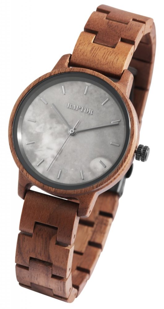 O relógio de pulso feminino analógico de 3 ponteiros da marca Raptor possui o movimento de quartzo Miyota GL30 de alta qualidade. A bracelete de madeira tem 16 mm de largura na alça e pode ser aberta e fechada com um fecho dobrável em aço inoxidável. O comprimento total do relógio é de 22 cm. A caixa de madeira com vidro mineral tem um diâmetro de 36 mm e uma altura de 11 mm. O fundo da caixa também é feito de madeira. Um destaque visual é a borda espelhada de 1 mm de largura no vidro mineral. Os ponteiros são feitos na mesma cor da borda do espelho e juntos conferem ao relógio um visual especial e elegante. Com o relógio de madeira Raptor você tem um atrativo absoluto em seu pulso que pode ser combinado para qualquer ocasião. Graças ao material leve, adapta-se perfeitamente ao pulso para obter um conforto de utilização fantástico.