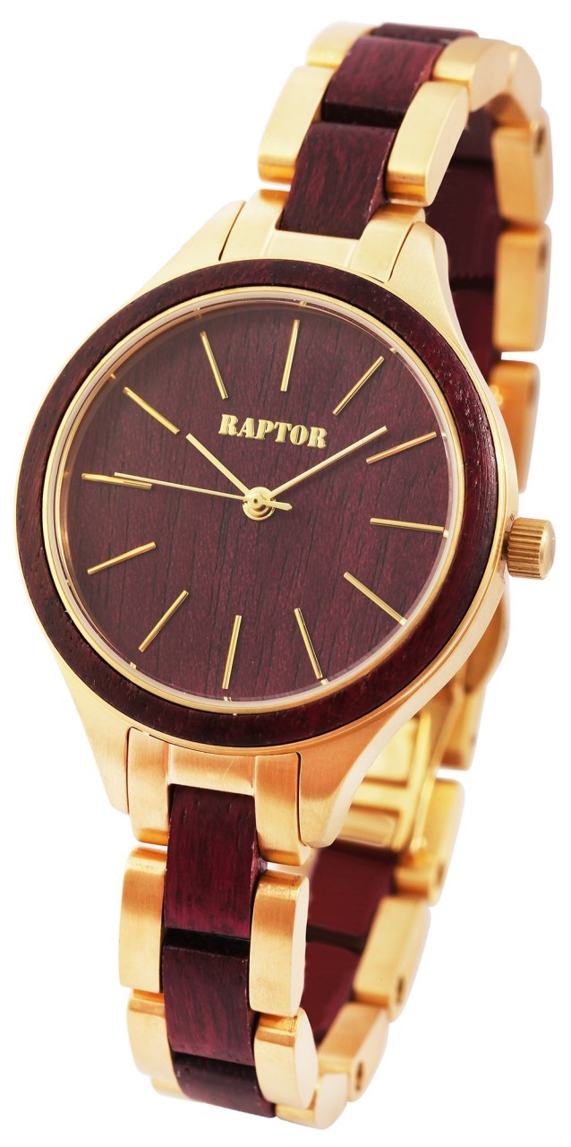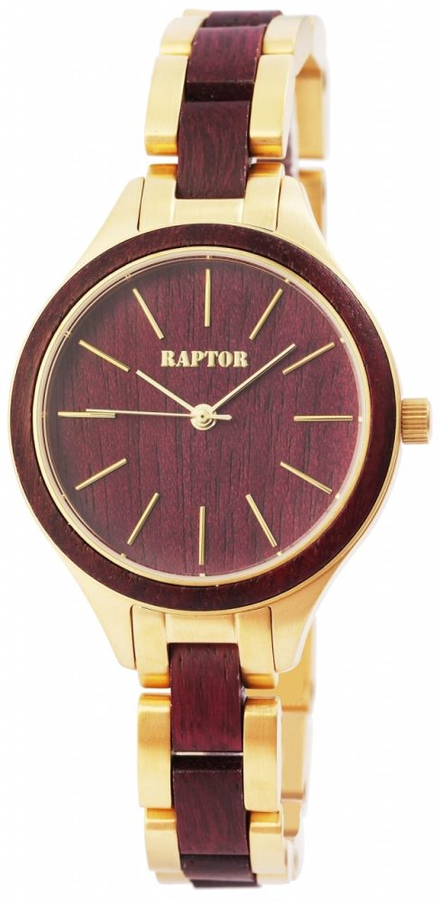Relógio feminino Raptor “Laila” feito de aço inoxidável com madeira.
