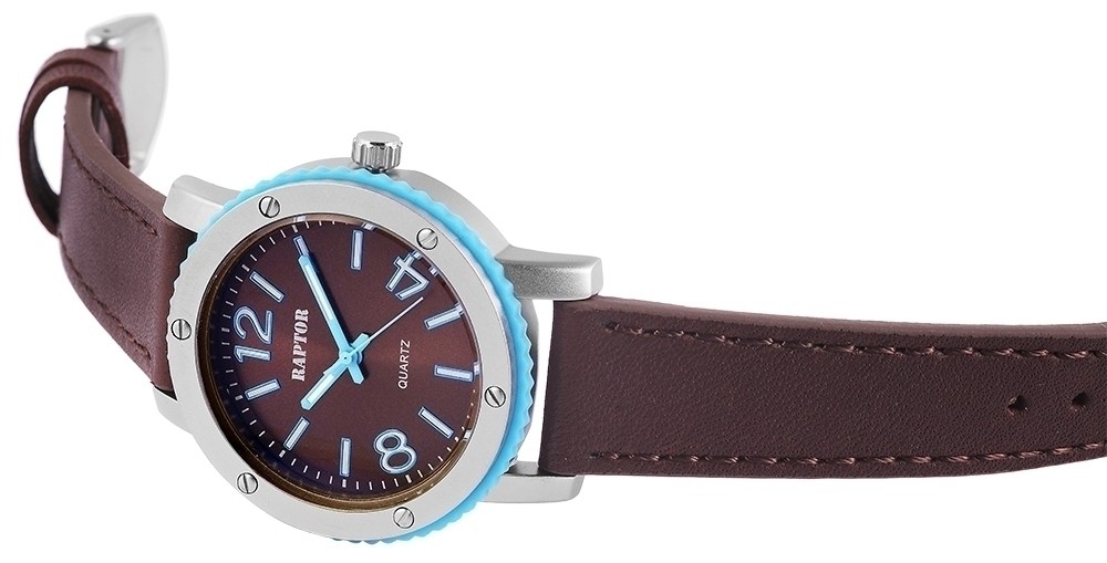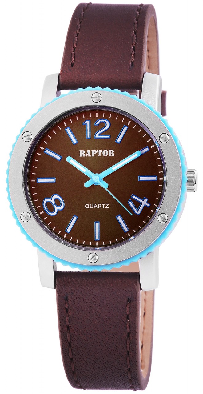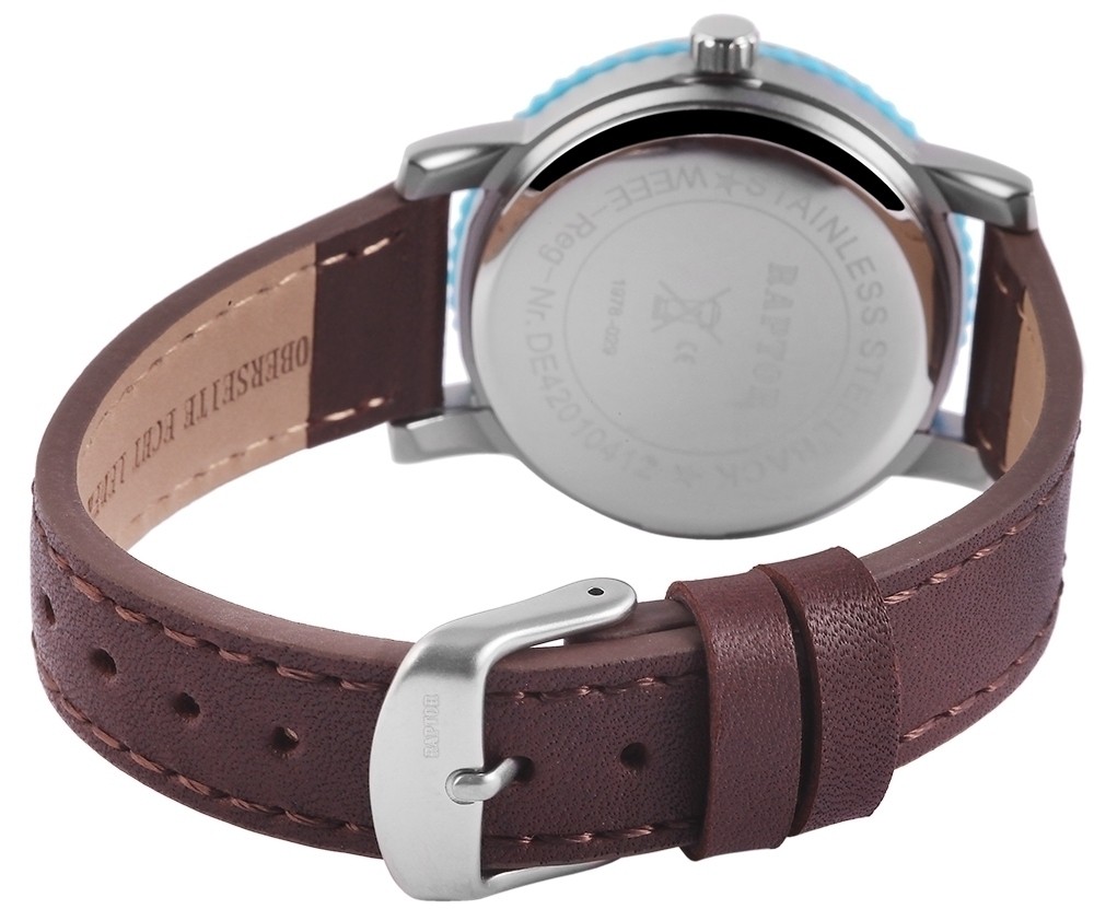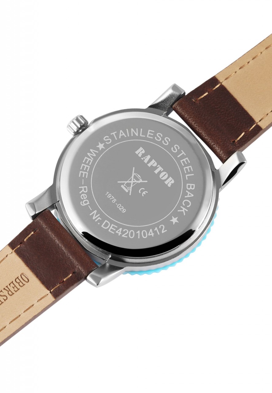 O relógio de mulher analógico da marca Raptor possui um movimento de quartzo de alta qualidade. A bracelete em pele genuína tem 18 mm de largura e abre-se com uma fivela de pino. O comprimento total é de 23 cm. A caixa metálica com vidro mineral mede 38 mm e tem 12 mm de altura. A tampa da caixa é feita de aço inoxidável. Receberá os seguintes acessórios com o seu produto: cartão de garantia, caixa original.