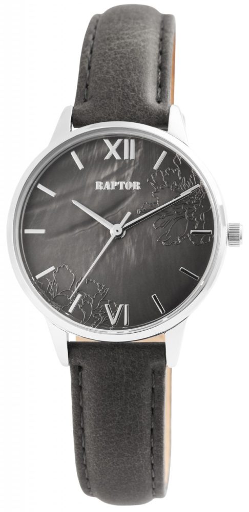 O relógio de pulso analógico para mulher da marca Raptor “Narce” possui um movimento de quartzo de alta qualidade. A bracelete em pele genuína tem 14 mm de largura e tem uma fivela em aço inoxidável. O comprimento total do relógio é de 22 cm. A caixa metálica com vidro mineral tem um diâmetro de 32 mm e uma altura de 7 mm. O fundo da caixa é feito de aço inoxidável.
