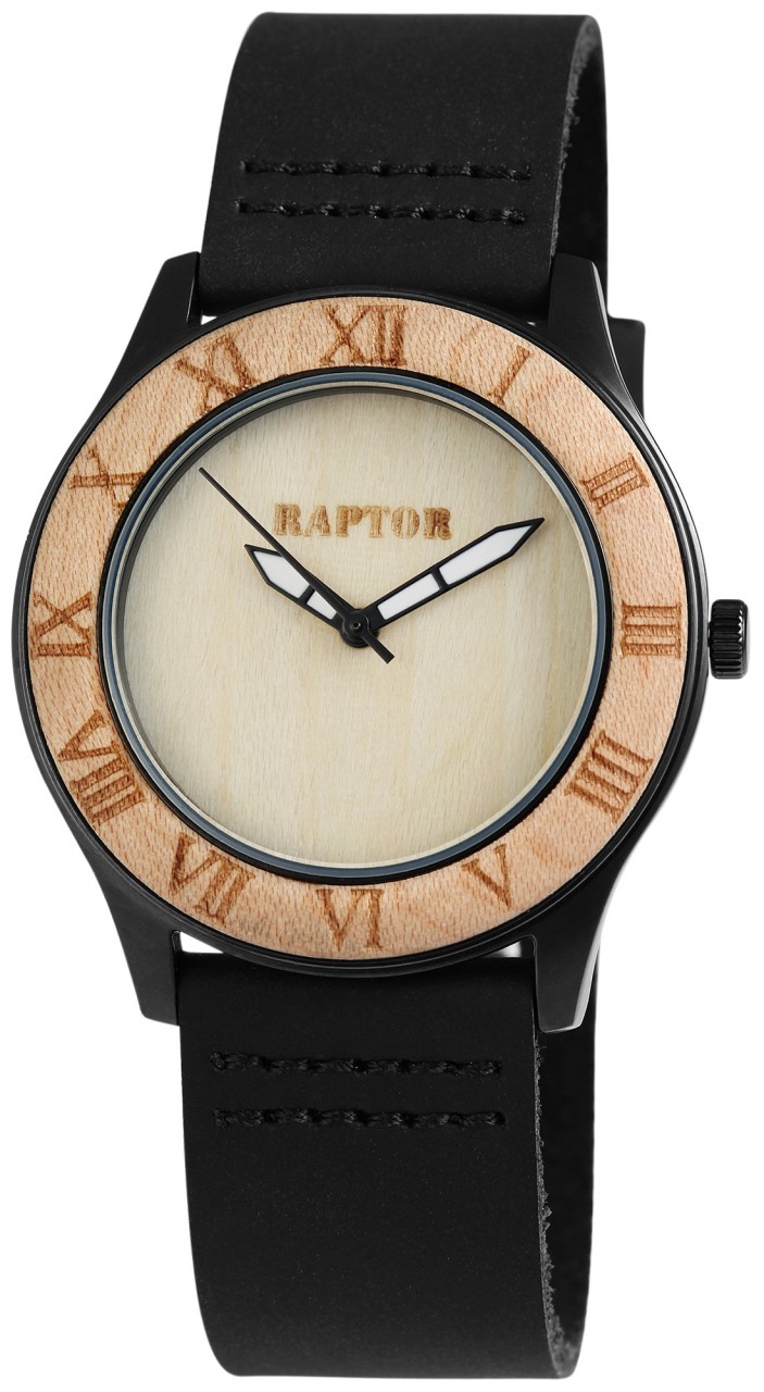 O relógio analógico de senhora da marca Raptor possui um movimento Miyota 2035. A bracelete em pele genuína tem 20 mm de largura e abre-se com uma fivela de pino em aço inoxidável. O comprimento total é de 20 cm. A caixa em madeira de ácer com vidro mineral tem um diâmetro de 39 mm e uma altura de 8 mm. A tampa da caixa é feita de aço inoxidável. Receberá os seguintes acessórios com o seu produto: cartão de garantia, caixa original.