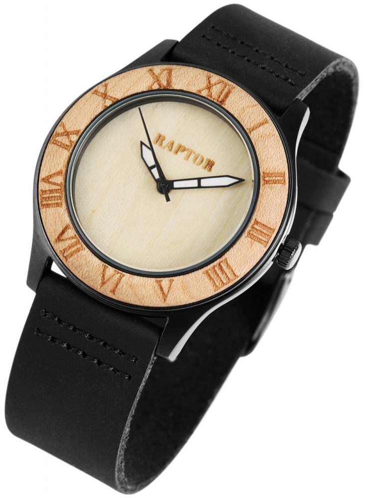 O relógio analógico de senhora da marca Raptor possui um movimento Miyota 2035. A bracelete em pele genuína tem 20 mm de largura e abre-se com uma fivela de pino em aço inoxidável. O comprimento total é de 20 cm. A caixa em madeira de ácer com vidro mineral tem um diâmetro de 39 mm e uma altura de 8 mm. A tampa da caixa é feita de aço inoxidável. Receberá os seguintes acessórios com o seu produto: cartão de garantia, caixa original.