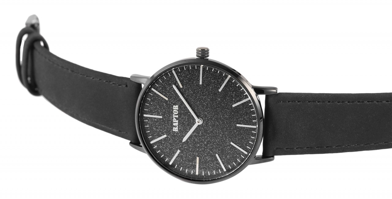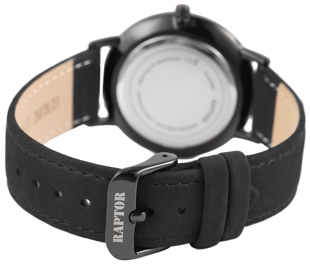 O relógio unissexo analógico da marca Raptor tem um GL20 e a designação do modelo é RA064. Bracelete em Pele Genuína tem 20 mm de largura e abre-se com um fecho de gancho. O comprimento total é de 18 cm. A caixa metálica com vidro mineral mede 40 mm e tem 7 mm de altura. A tampa da caixa é feita de aço inoxidável. O acabamento em cristal no mostrador é também um destaque visual.