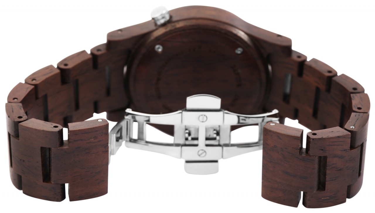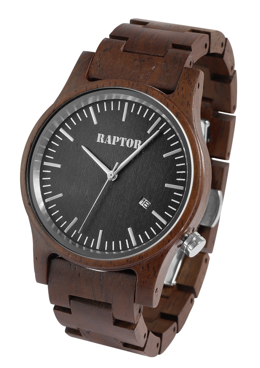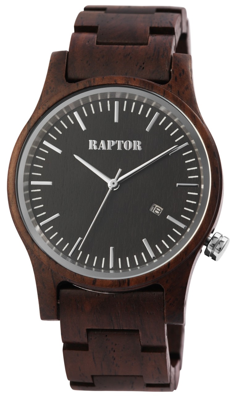 O relógio de pulso unissexo analógico de 3 ponteiros da marca Raptor possui um movimento de quartzo Miyota 2115 de alta qualidade. A bracelete de madeira tem 20 mm de largura na extremidade e pode ser aberta e fechada com um fecho de borboleta em aço inoxidável. O comprimento total do relógio é de 22,5 cm. A caixa de madeira com vidro mineral tem um diâmetro de 40 mm e uma altura de 12 mm. O fundo da caixa também é de madeira. Os ponteiros são prateados e existe uma janela de data às “4 horas”. Com o relógio de madeira Raptor, está a usar no seu pulso um verdadeiro chamariz que pode combinar com qualquer ocasião. Como o material é muito leve, o relógio adapta-se perfeitamente ao pulso e é muito confortável de usar. O relógio é o presente perfeito para um aniversário, Dia da Mãe, Natal ou Dia dos Namorados.