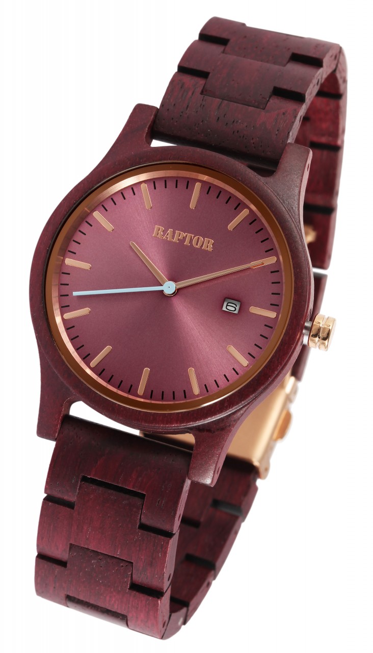 O relógio de pulso analógico unissexo de 3 ponteiros da marca Raptor possui o movimento de quartzo Miyota GM12 de alta qualidade. A pulseira de madeira tem 20 mm de largura na alça e pode ser aberta e fechada com um fecho dobrável em aço inoxidável. O comprimento total do relógio é de 23,5 cm. A caixa de madeira com fundo de madeira da mesma cor e vidro mineral tem diâmetro de 41 mm e altura de caixa de 10 mm. O vidro mineral transparente tem uma borda espelhada e, juntamente com a coroa de cores coordenadas, confere ao relógio uma aparência elegante. A divisão do mostrador é simples e tem aspeto de metal brilhante. O ponteiro azul claro dos segundos é marcante e com certeza não passará despercebido. O relógio de madeira Raptor também possui uma exibição de data às três horas. Como acessórios do seu produto, você receberá um cartão de garantia e uma caixa original da marca Raptor.