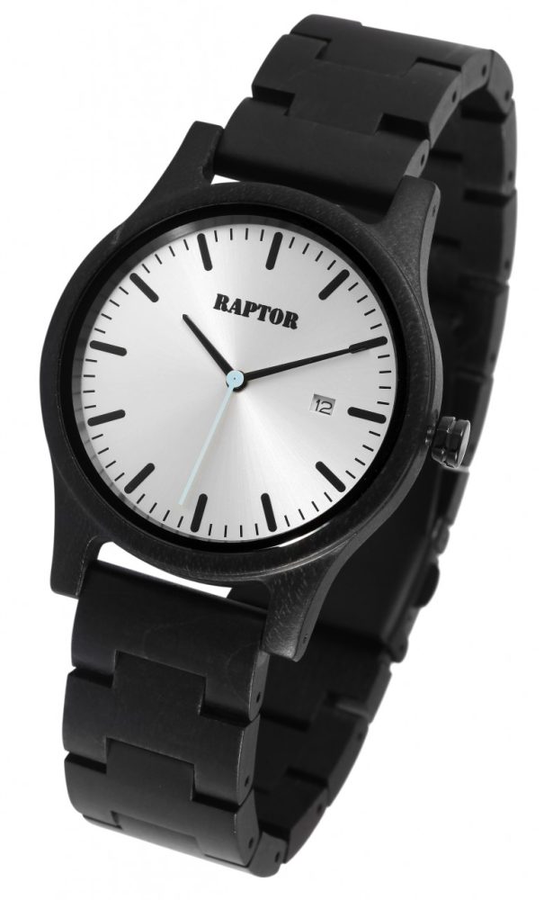 O relógio de pulso analógico unissexo de 3 ponteiros da marca Raptor possui o movimento de quartzo Miyota GM12 de alta qualidade. A bracelete de madeira tem 20 mm de largura na alça e pode ser aberta e fechada com um fecho dobrável em aço inoxidável. O comprimento total do relógio é de 23,5 cm. A caixa de madeira com fundo de madeira da mesma cor e vidro mineral tem diâmetro de 41 mm e altura de caixa de 10 mm. O vidro mineral transparente tem uma borda espelhada e, juntamente com a coroa de cores coordenadas, confere ao relógio uma aparência elegante. A divisão do mostrador é simples. O ponteiro azul claro dos segundos é marcante e com certeza não passará despercebido. O relógio de madeira Raptor também possui uma exibição de data às três horas. Inclui caixa original da marca Raptor e cartão de garantia.