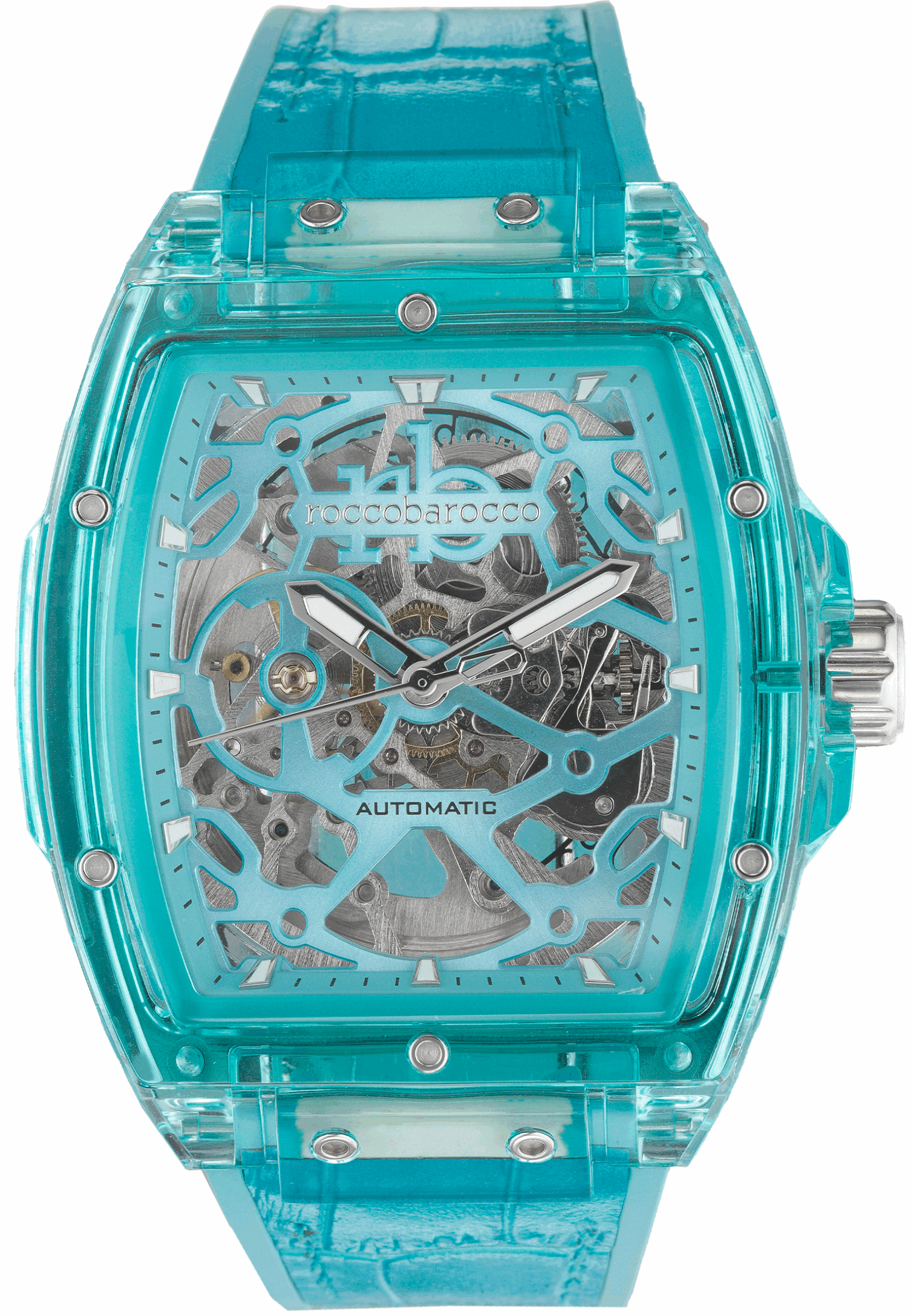 Modelo Next One – Modelo unissexo em cores vibrantes com movimento automático, o verdadeiro design RoccoBarocco que define a tendência para o futuro.