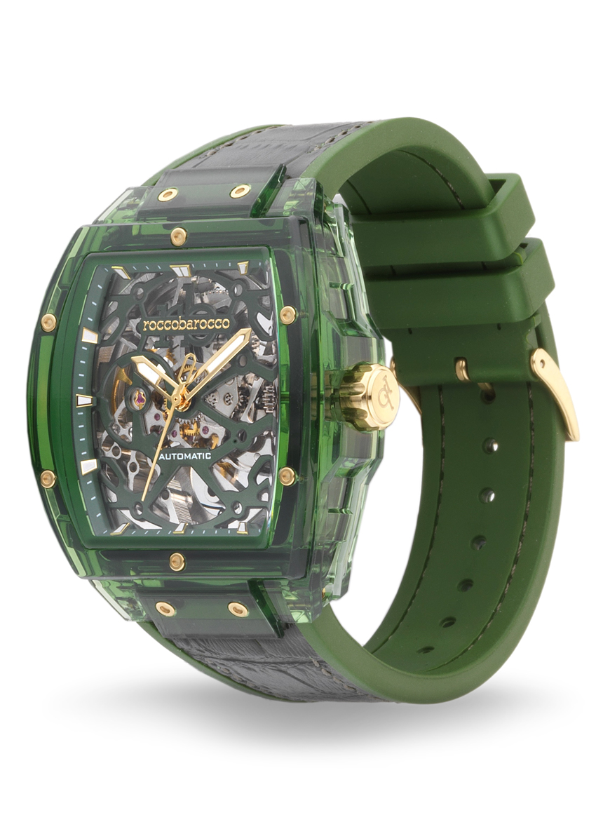 Modelo Next One – Modelo unissexo em cores vibrantes com movimento automático, o verdadeiro design RoccoBarocco que define a tendência para o futuro.