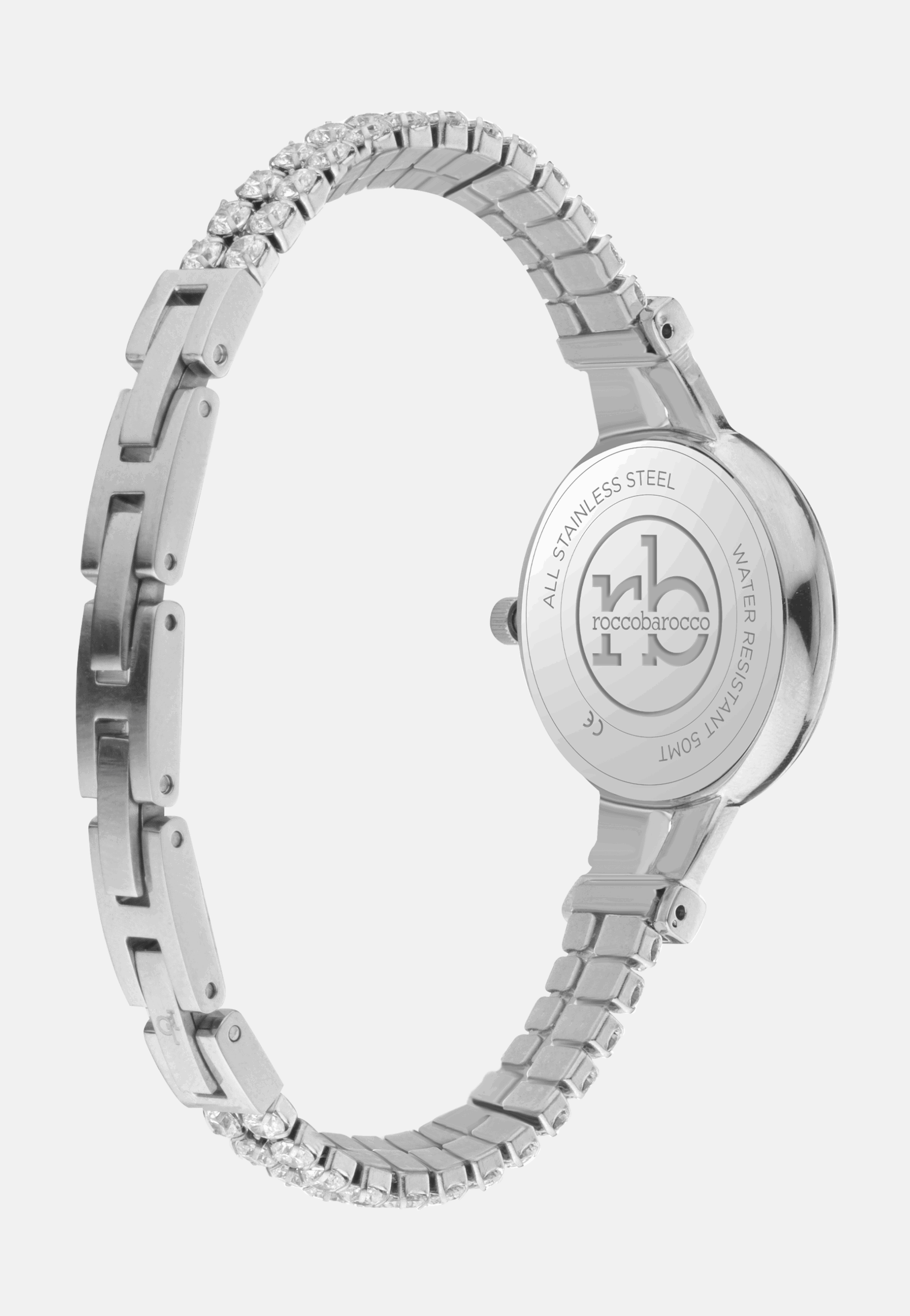 Modelo Glow – «Glow» é um relógio feminino com um design minimalista e um mostrador e caixa clássicos, bracelete dupla em aço inoxidável decorada com pedras. Elegância e requinte que conferem uma aparência sofisticada.
