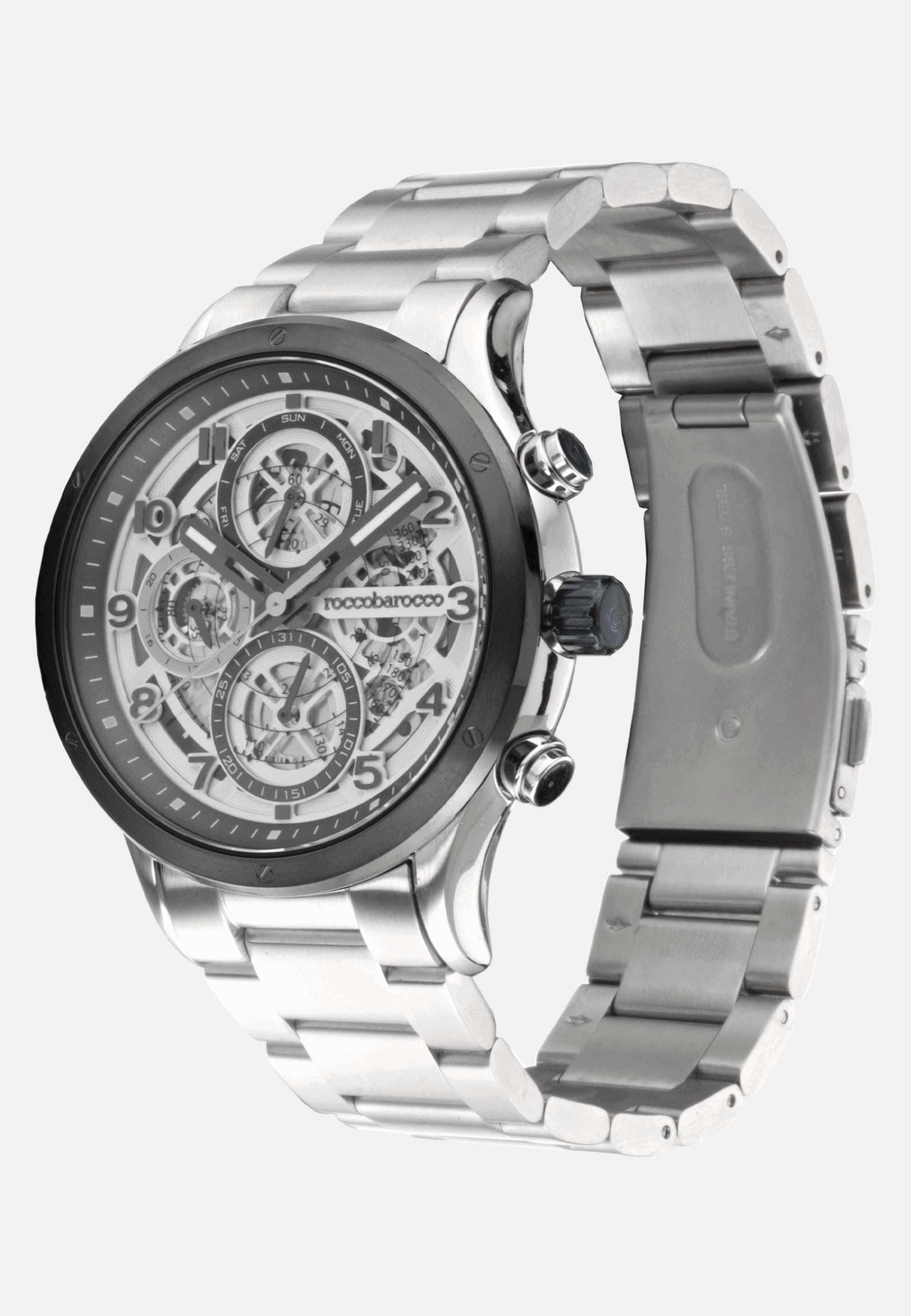 Modelo Kairos –«Kairos» é um relógio masculino, um cronógrafo com um design sofisticado do mostrador e braceletes em aço e couro. Elegante e versátil, é o acessório ideal para completar um look clássico ou casual elegante.