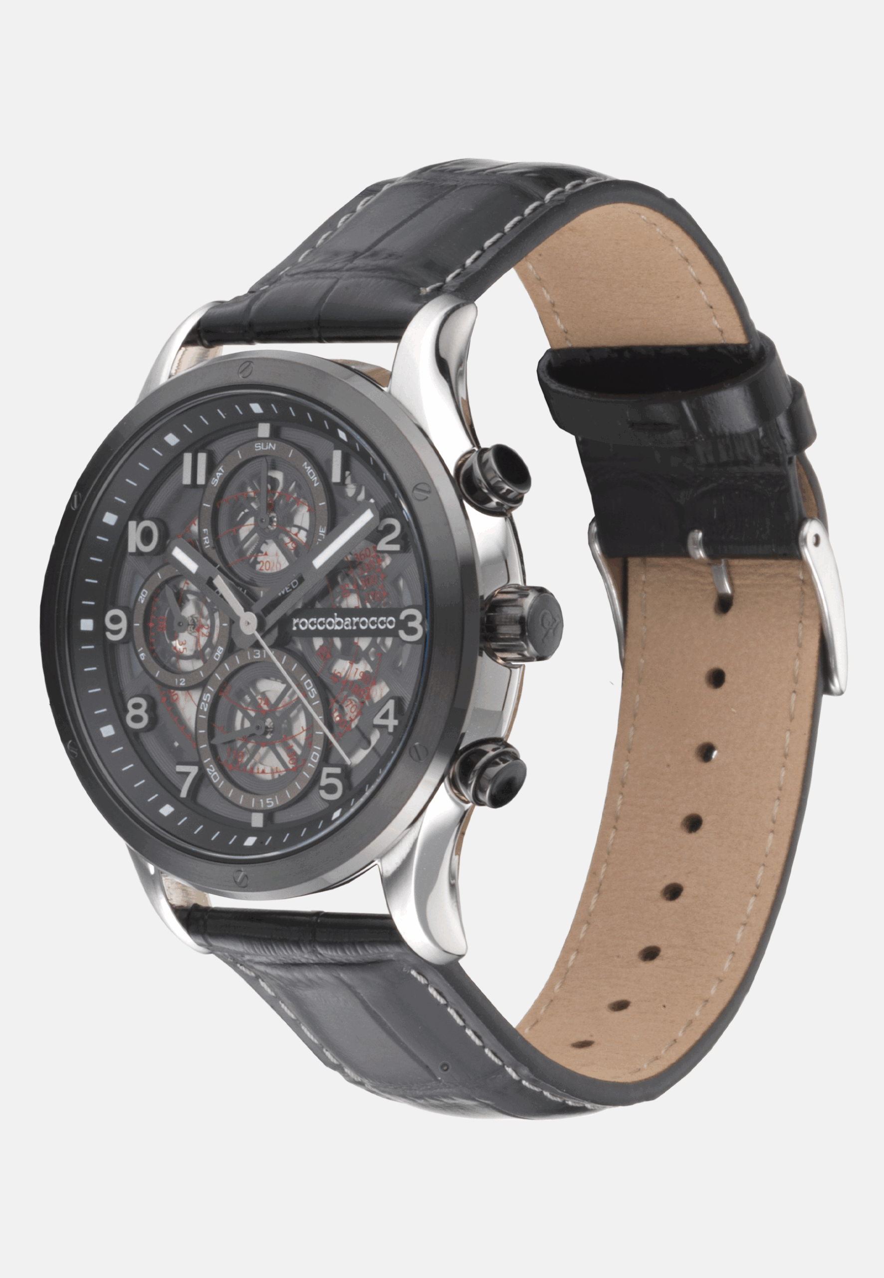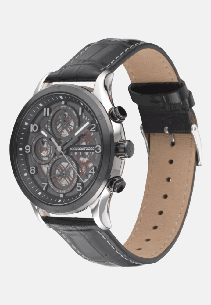 Modelo Kairos –«Kairos» é um relógio masculino, um cronógrafo com um design sofisticado do mostrador e braceletes em aço e couro. Elegante e versátil, é o acessório ideal para completar um look clássico ou casual elegante.
