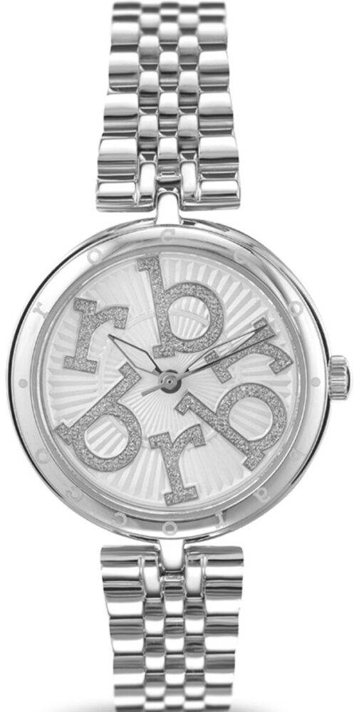 Modelo RBRBRB –  Relógio feminino com caixa redonda e logótipo RB incrustado com pedras, bracelete em aço inoxidável. Elegante em preto, dourado e prateado, perfeito para completar um look de noite ou adicionar um toque de luxo ao seu look do dia a dia.