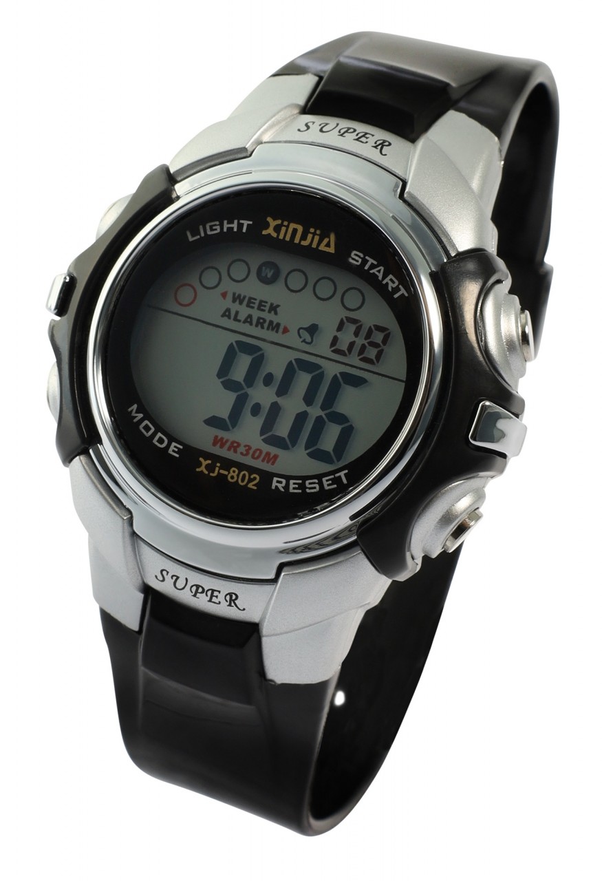 O relógio digital Xinjia é uma excelente prenda para os jovens aventureiros. A bracelete em TPU combina flexibilidade e durabilidade. Tem um comprimento total de 22,5 cm e uma largura de 18 mm na extremidade, o que garante um ajuste confortável no pulso. Graças à prática fivela de pino, o relógio é fácil de colocar e de retirar. A caixa do relógio é feita de plástico resistente e tem um diâmetro de 32,5 mm. O fundo da caixa em aço inoxidável garante uma durabilidade adicional e aumenta o conforto de utilização. Este relógio tem muitas funções úteis: indicação de 12/24 horas, da data, do dia da semana (em inglês), alarme, cronómetro, luz e resistência à água de 3 ATM. Quer seja para a escola, lazer ou desporto, o movimento de quartzo de alta qualidade faz deste relógio um companheiro fiável para as crianças e está disponível em muitas cores bonitas.