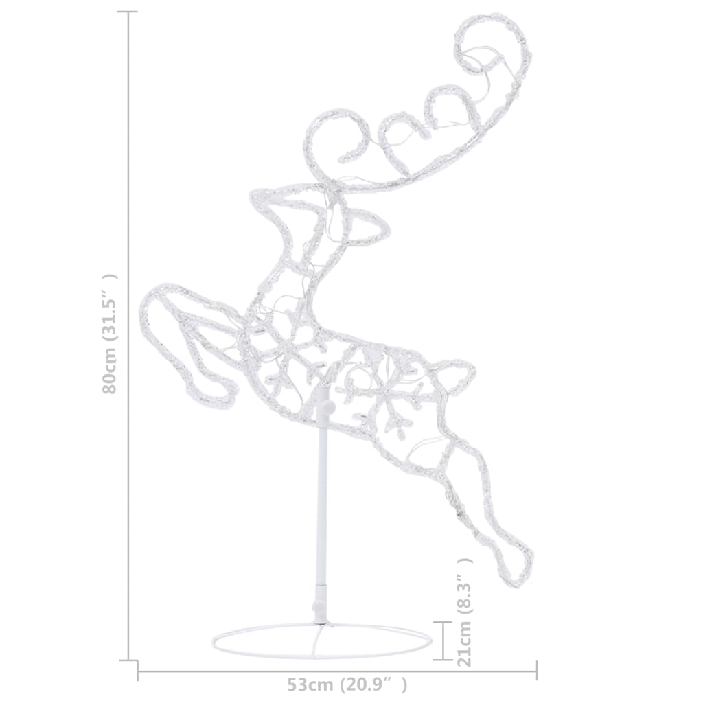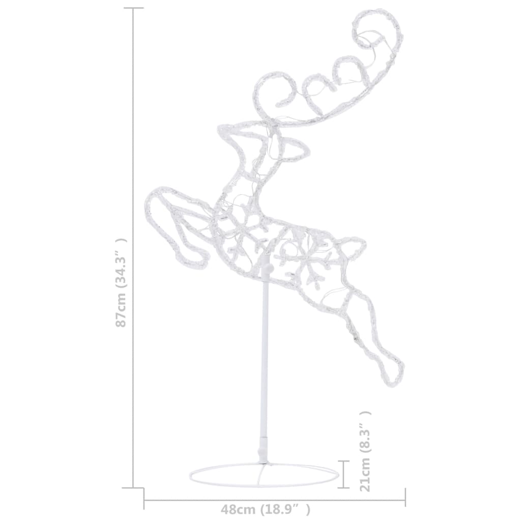 Rena voadora/trenó de Natal 260x21x87cm acrílico branco quente - PORTES GRÁTIS