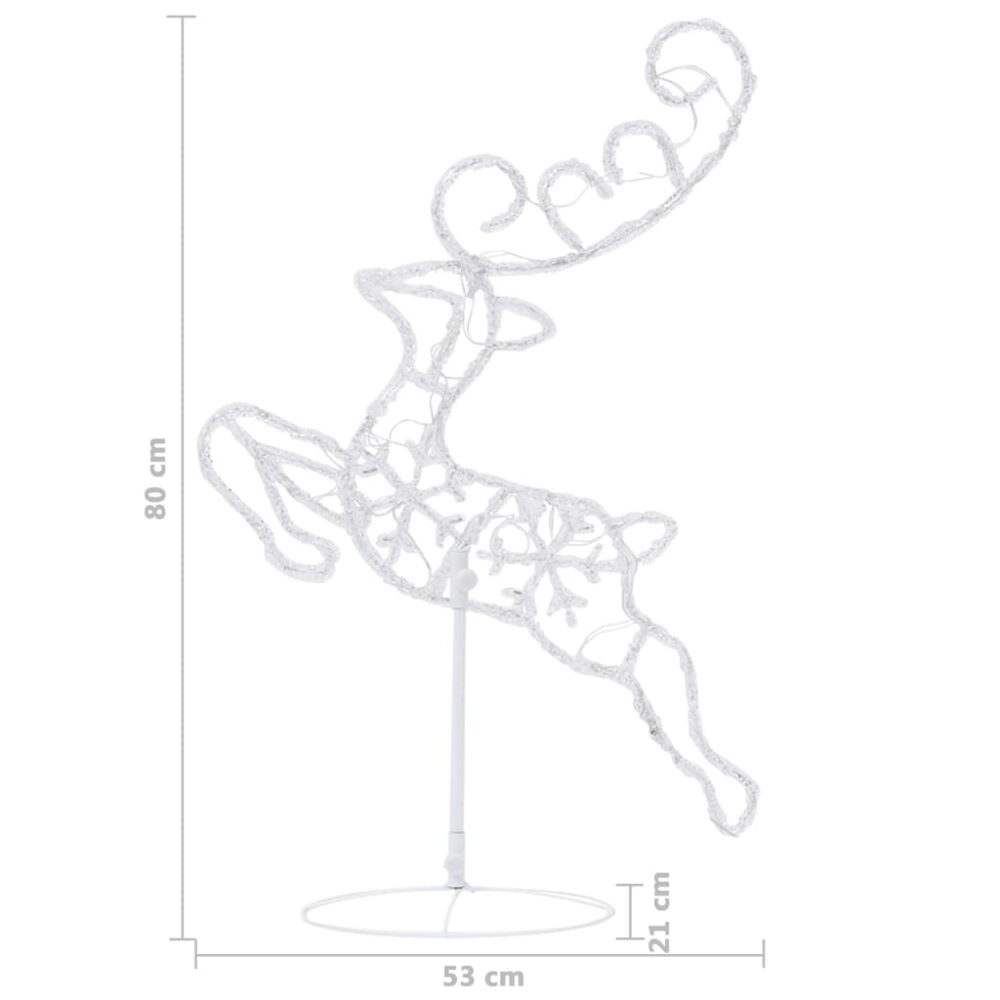 Decore a sua casa com esta peça decorativa de trenó e rena voadora de Natal. Feita de acrílico, esta decoração de Natal apresenta um aspeto bonito. A decoração de renas e trenó brilhantes apresenta 72 luzes LED, que são eficientes em termos energéticos e duradouras. Foi concebida com 8 níveis de iluminação diferentes: uma combinação de todos os efeitos, brilho lento, cintilação/flash, em onda, perseguição/água corrente, sequencial, constante e desvanecimento lento. Ilumina-se de uma forma muito bonita e cria uma atmosfera natalícia mágica. O suporte incluído aumenta ainda a sua estabilidade. Nota: o produto possui um conetor USB, mas a fonte de alimentação USB de 5 V certificada não está incluída. O USB incluído não é à prova de água, portanto, esta peça deve ficar afastada da água. No entanto, graças ao cabo com uma extensão de 5 m, as renas e o trenó podem ser usados ao ar livre, pois o cabo e o produto são à prova de água. Este produto é alimentado por CC 5V, mas a fonte de alimentação USB de 5V certificada não está incluída. Uma tensão mais elevada pode provocar um sobreaquecimento e resultar em danos no dispositivo e no risco potencial de incêndio.
