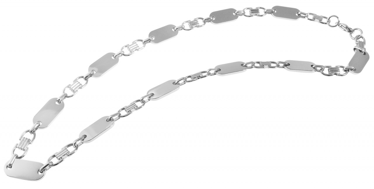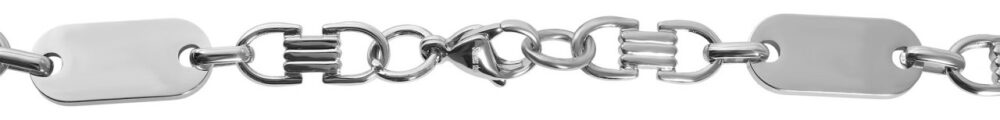Reto – uma impressionante corrente de placa, disponível em diferentes comprimentos, 55 cm, 60 cm e 70 cm. Reto é um colar versátil para homens e mulheres e dá um toque especial a qualquer roupa. As placas de 22 x 10 mm oferecem espaço suficiente para uma gravação personalizada, pelo que não há limites para a sua criatividade. As placas de gravação alternam com os elementos texturados para dar à corrente “Reto” um aspeto impressionante. O fecho lagosta oferece-lhe segurança e torna o colar fácil de pôr e tirar. Usado em conjunto com a pulseira “Enid” a condizer, esta combinação de jóias é perfeita