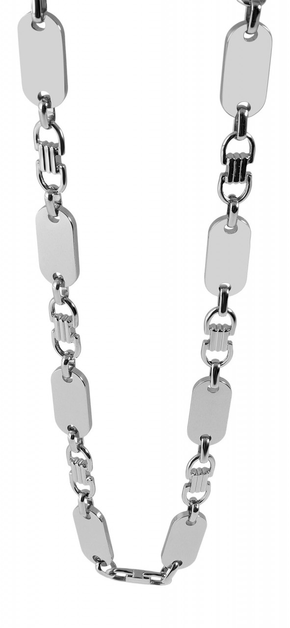Reto – uma impressionante corrente de placa, disponível em diferentes comprimentos, 55 cm, 60 cm e 70 cm. Reto é um colar versátil para homens e mulheres e dá um toque especial a qualquer roupa. As placas de 22 x 10 mm oferecem espaço suficiente para uma gravação personalizada, pelo que não há limites para a sua criatividade. As placas de gravação alternam com os elementos texturados para dar à corrente “Reto” um aspeto impressionante. O fecho lagosta oferece-lhe segurança e torna o colar fácil de pôr e tirar. Usado em conjunto com a pulseira “Enid” a condizer, esta combinação de jóias é perfeita