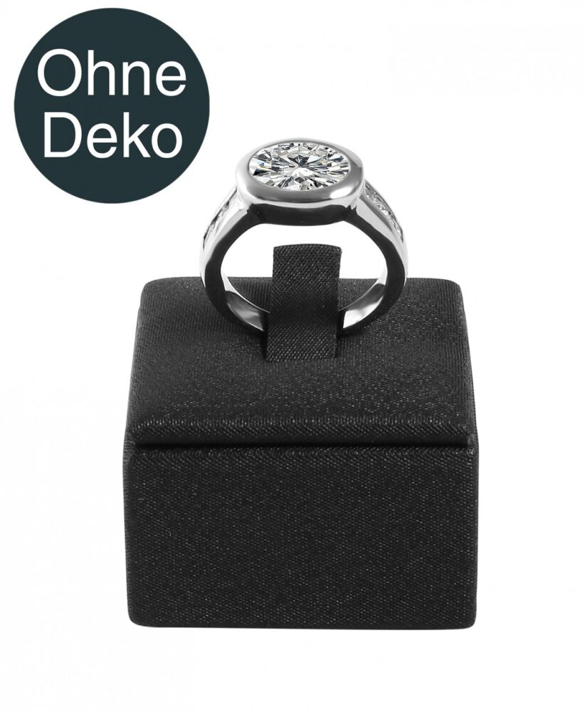 Com formato quadrado e dimensões de 2,5 x 3,5 x 3,5 cm, este suporte é a escolha ideal para apresentar anéis de uma forma particularmente atraente. A camada de PU mate de alta qualidade confere ao suporte do anel uma aparência elegante e garante que os anéis sejam particularmente eficazes. O design não é apenas esteticamente agradável, mas também funcionalmente bem pensado. O laço na parte superior do suporte permite exibir anéis com estilo. Graças a esta construção inteligente, cada anel é mantido de forma segura e ao mesmo tempo perfeitamente apresentado.