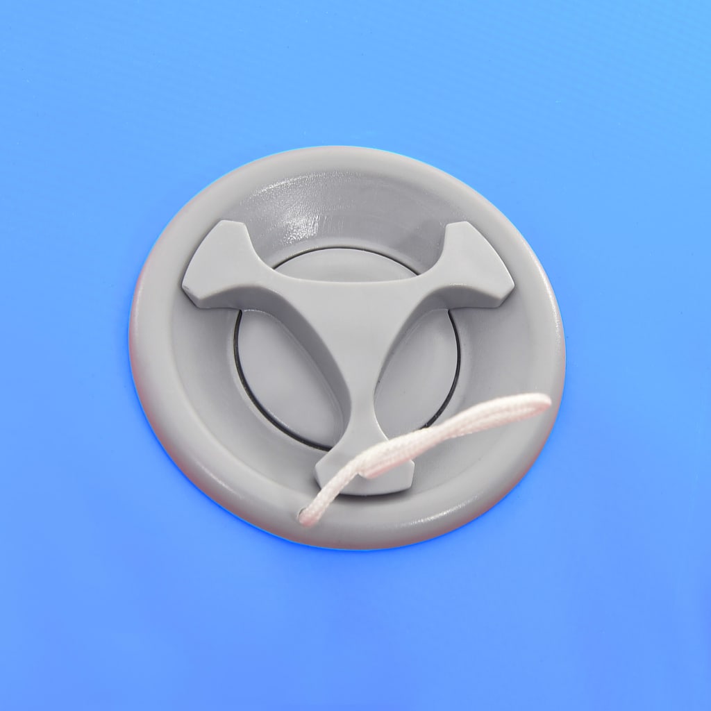 A entrega inclui um remendo de reparação e uma bomba de pé para facilitar o processo de encher e esvaziar.