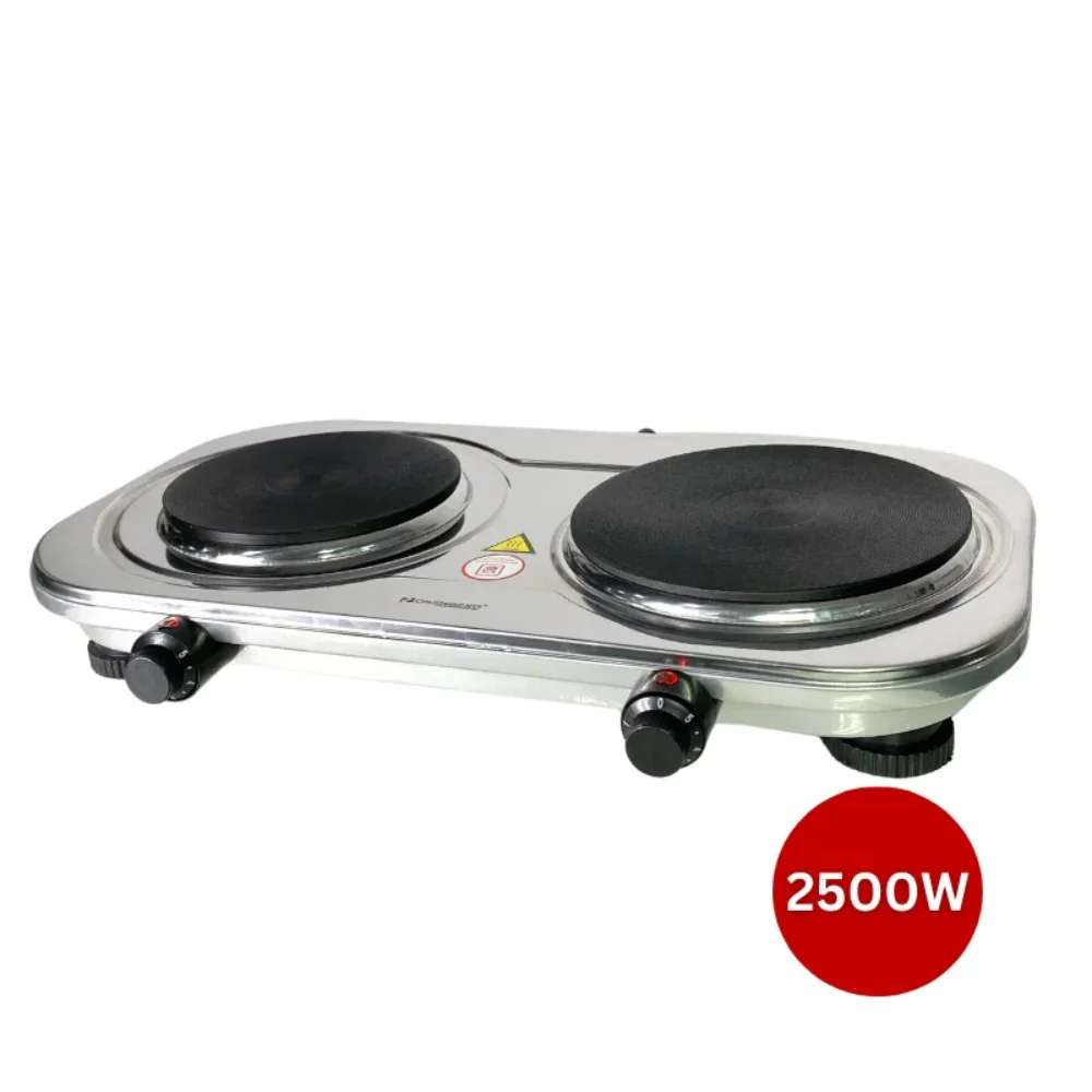 - Potência combinada de 2500 W – Este fogão elétrico duplo tem uma potência total de saída de 2500 W, dividida entre as duas placas de aquecimento, proporcionando aquecimento rápido e eficiente. Seu desempenho poderoso permite que você lide com várias tarefas de cozimento, como ferver, fritar ou cozinhar em fogo baixo, reduzindo o tempo de cozimento e tornando o preparo das refeições mais rápido e conveniente.
