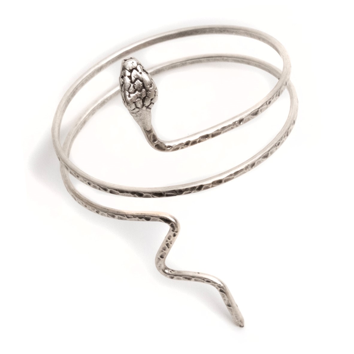 Pulseira de braço estilo cobra, produzida com liga de Zinco, Alumínio, Magnésio e Cobre.