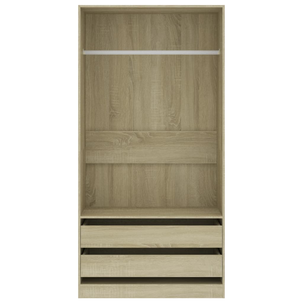 Este guarda-roupa é feito em contraplacado, o que lhe garante robustez e durabilidade. Inclui 2 gavetas e 1 compartimento grande com um varão para pendurar roupa, oferecendo um amplo espaço tanto para roupas mais compridas como para outras roupas ou acessórios dobrados tais como blusas, calças de ganga, chapéus, malas, etc.