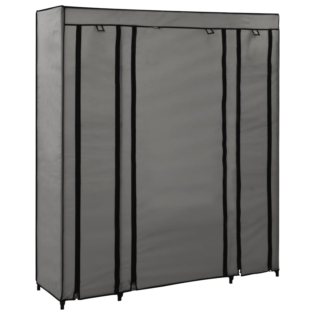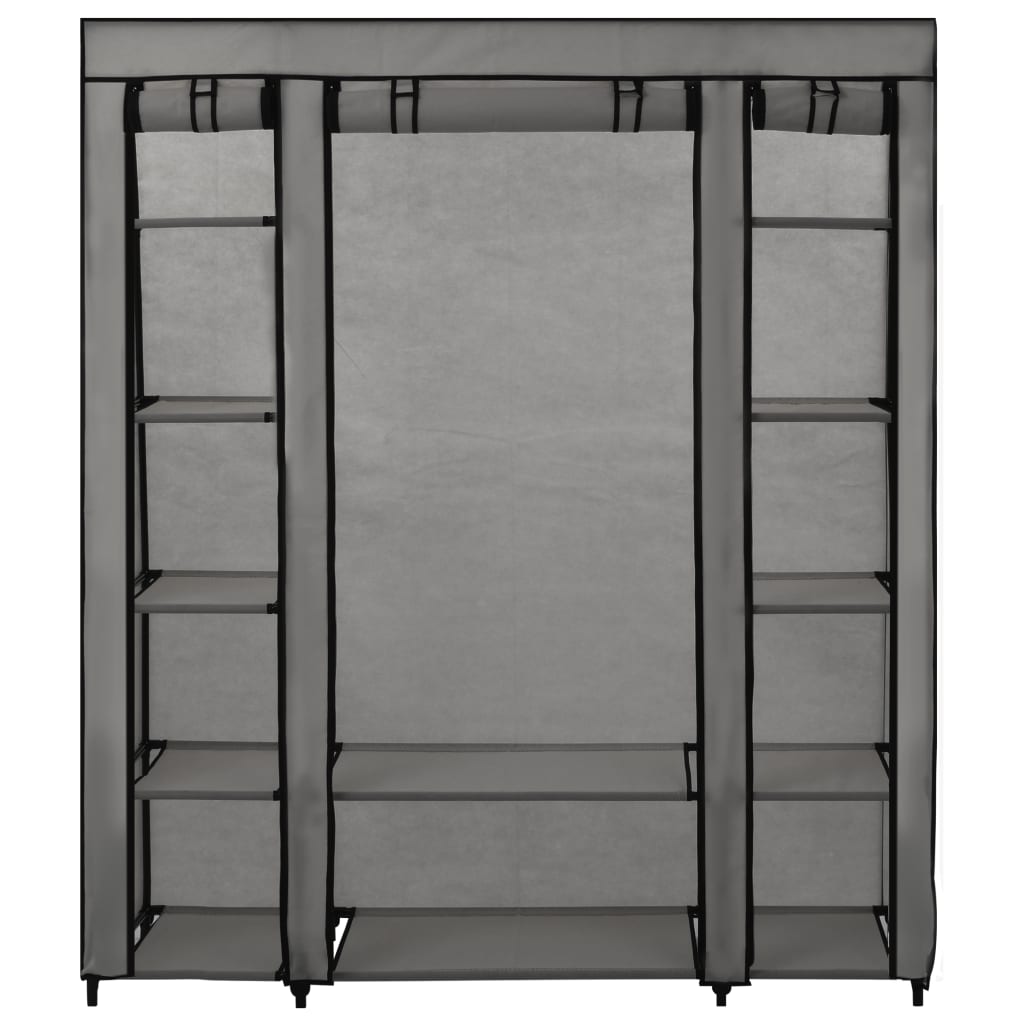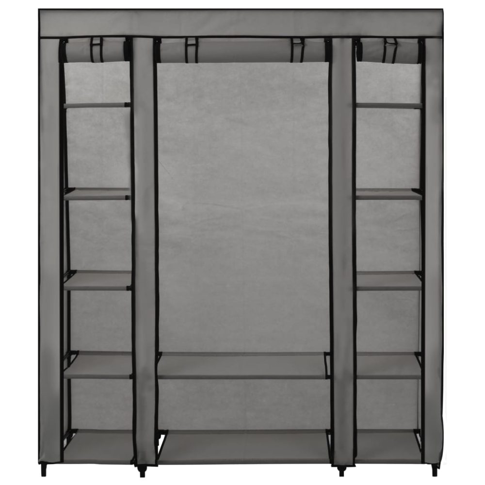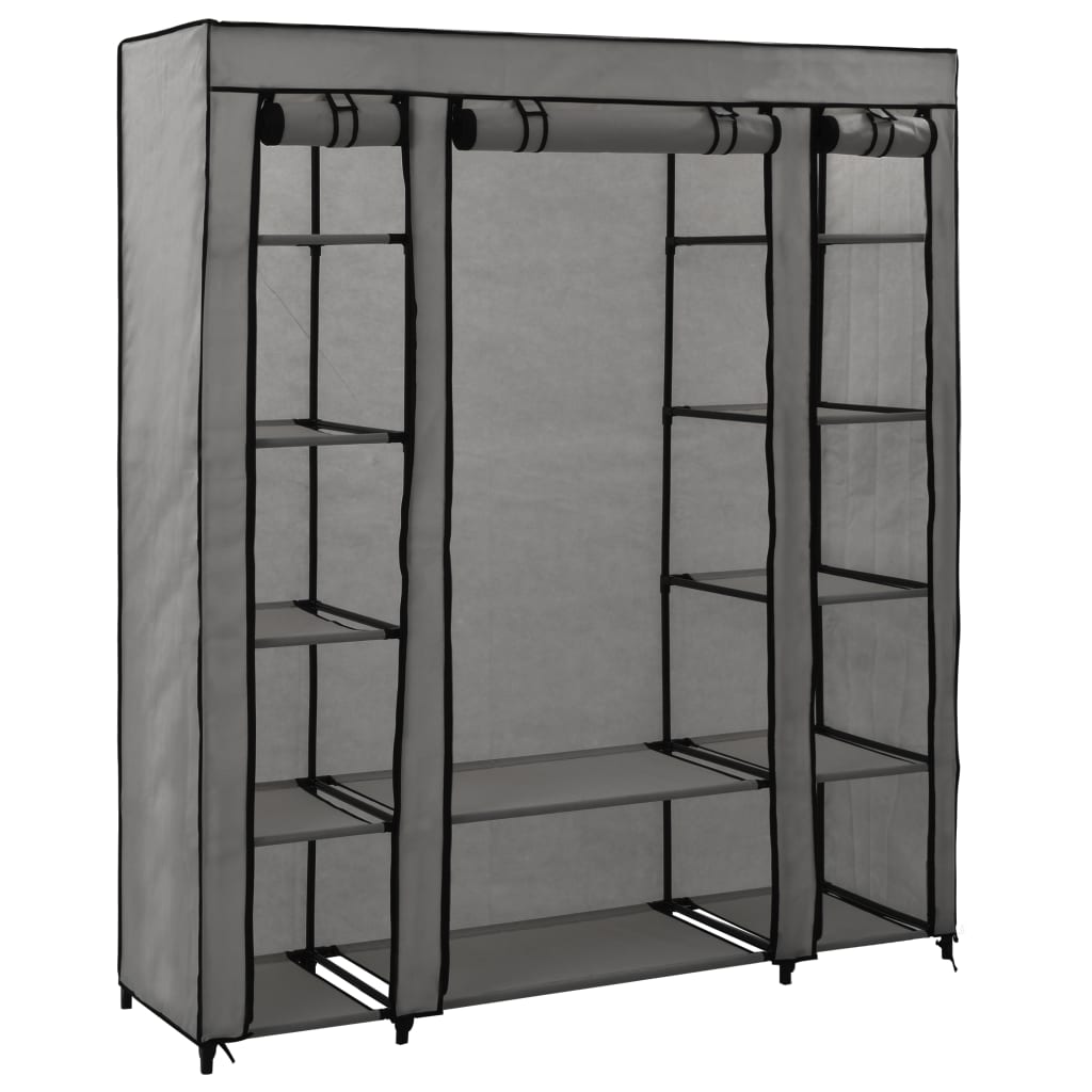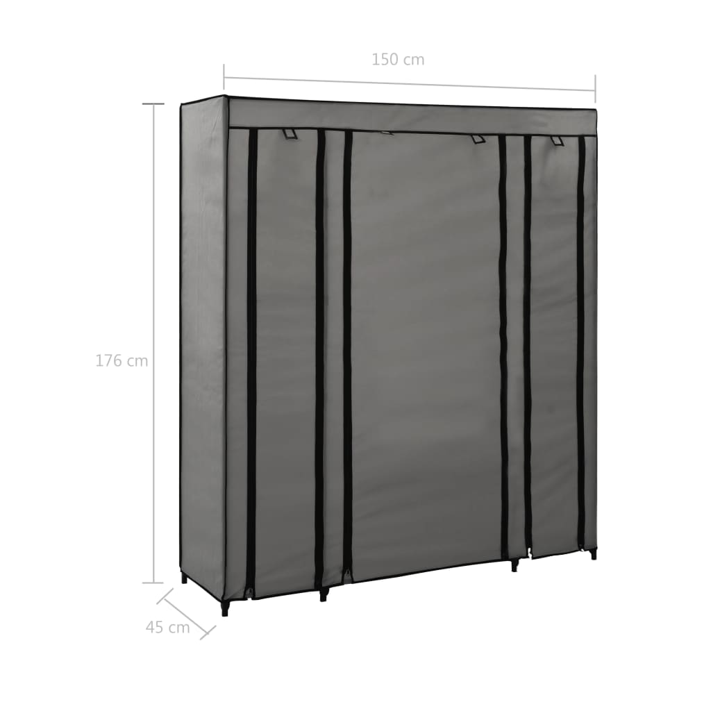 Este armário portátil foi concebido para proteger as suas roupas e sapatos do pó e sujidade da cave, quarto das crianças, quarto, sótão ou enquanto acampa. Neste armário existem vários compartimentos e varões, dependendo da configuração. A cobertura pode ser enrolada e presa com as tiras aderentes e os fechos de correr abrem e fecham a cobertura facilmente.