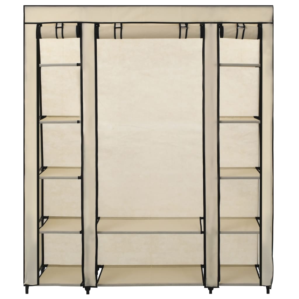 Este armário portátil foi concebido para proteger as suas roupas e sapatos do pó e sujidade da cave, quarto das crianças, quarto, sótão ou enquanto acampa. Neste armário existem vários compartimentos e varões, dependendo da configuração. A cobertura pode ser enrolada e presa com as tiras aderentes e os fechos de correr abrem e fecham a cobertura facilmente.