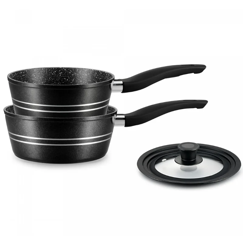 No exterior, um revestimento resistente ao calor pode suportar os rigores do cozimento em alta temperatura. Esteja você tostando, salteando ou fervendo, essas panelas estão à altura do desafio. O fundo de indução garante compatibilidade com uma ampla variedade de cooktops, incluindo gás, elétrico, cerâmico e indução, tornando-os uma escolha versátil para qualquer cozinha.