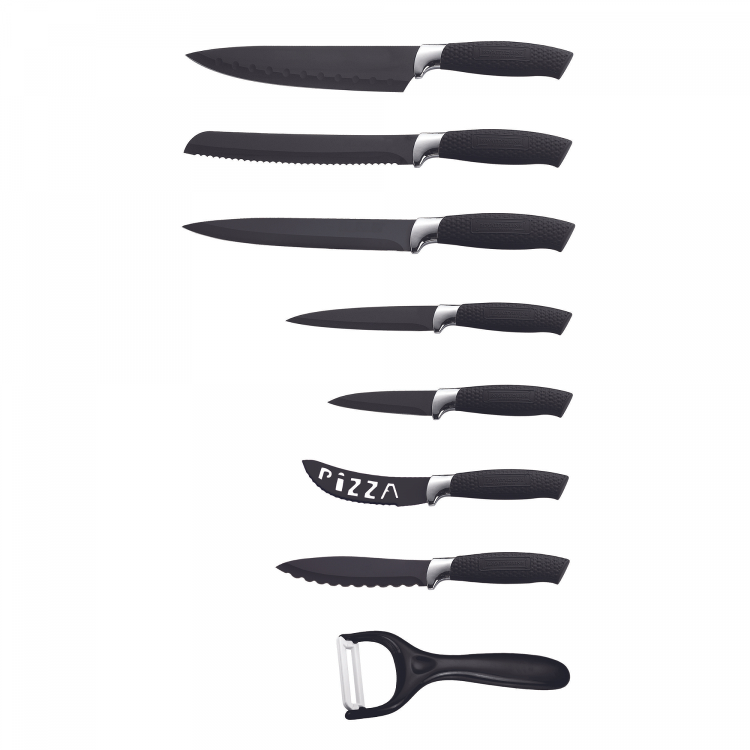 Royalty Line RL-BLK7-W: Conjunto de 7 facas com revestimento antiaderente e descascador - Preto