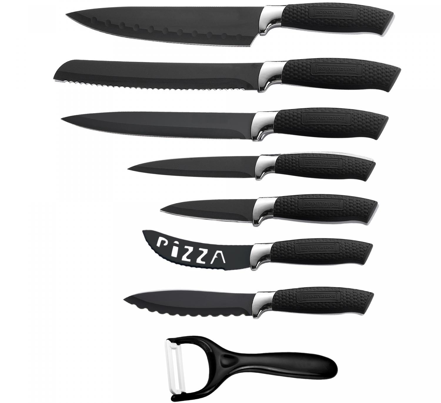 Royalty Line RL-BLK7-W: Conjunto de 7 facas com revestimento antiaderente e descascador – Preto