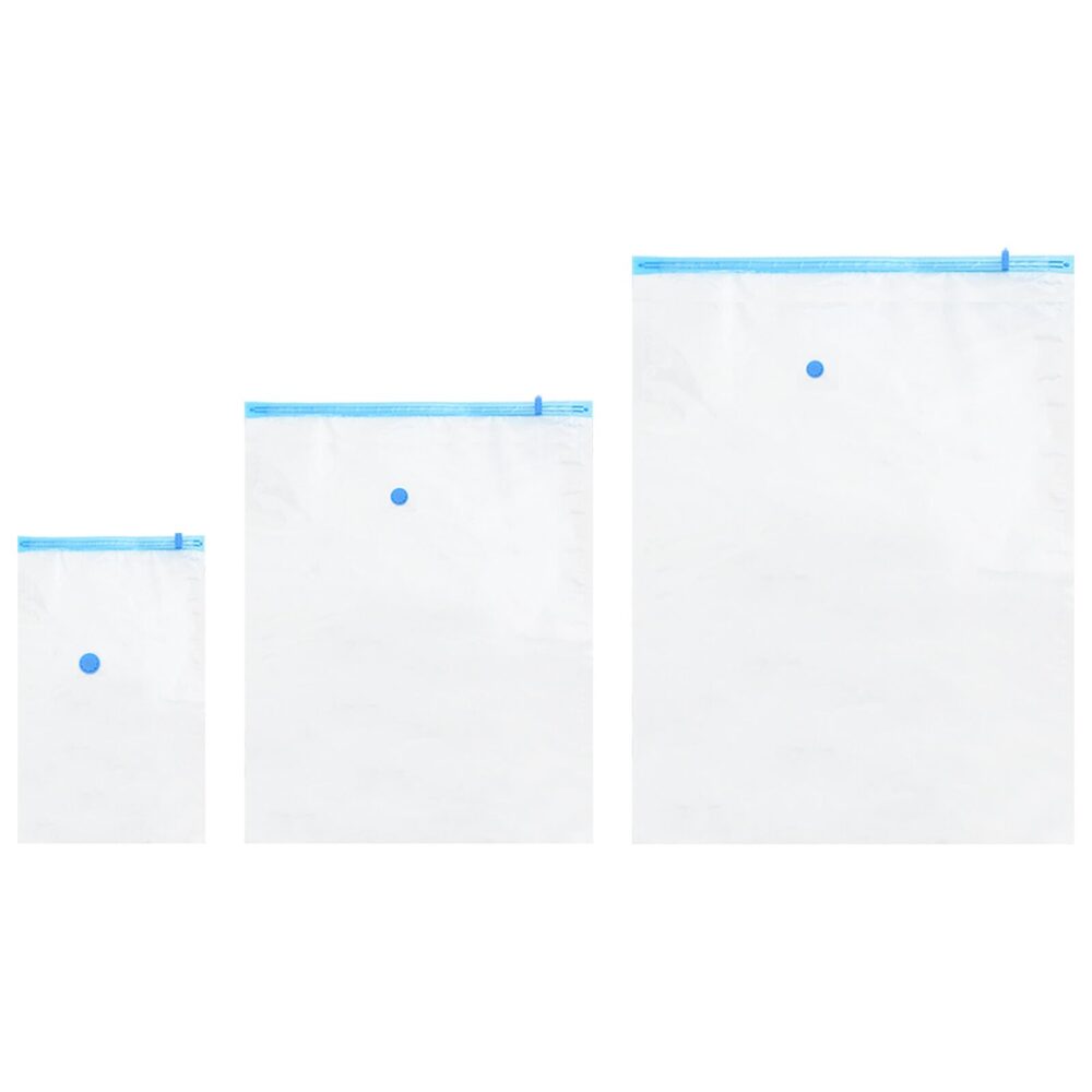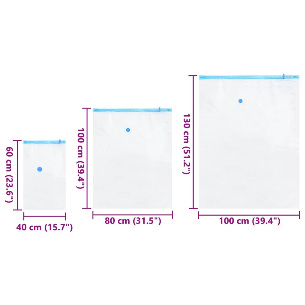 O conjunto de Sacos de Armazenamento a Vcuo perfeito para quem precisa de poupar espao. Estes sacos so uma forma inteligente de manter roupa sazonal, lenis e outros itens volumosos bem arrumados. Existem tamanhos diferentes para todas as necessidades de armazenamento, seja em lavandaria, quarto ou cave. Vedam hermeticamente, mantendo a umidade e odores indesejados fora. Os sacos ficam planos e comprimem facilmente, tornando-os super prticos. Com estas solues de armazenamento, a casa fica arrumada e reflete uma organizao moderna.