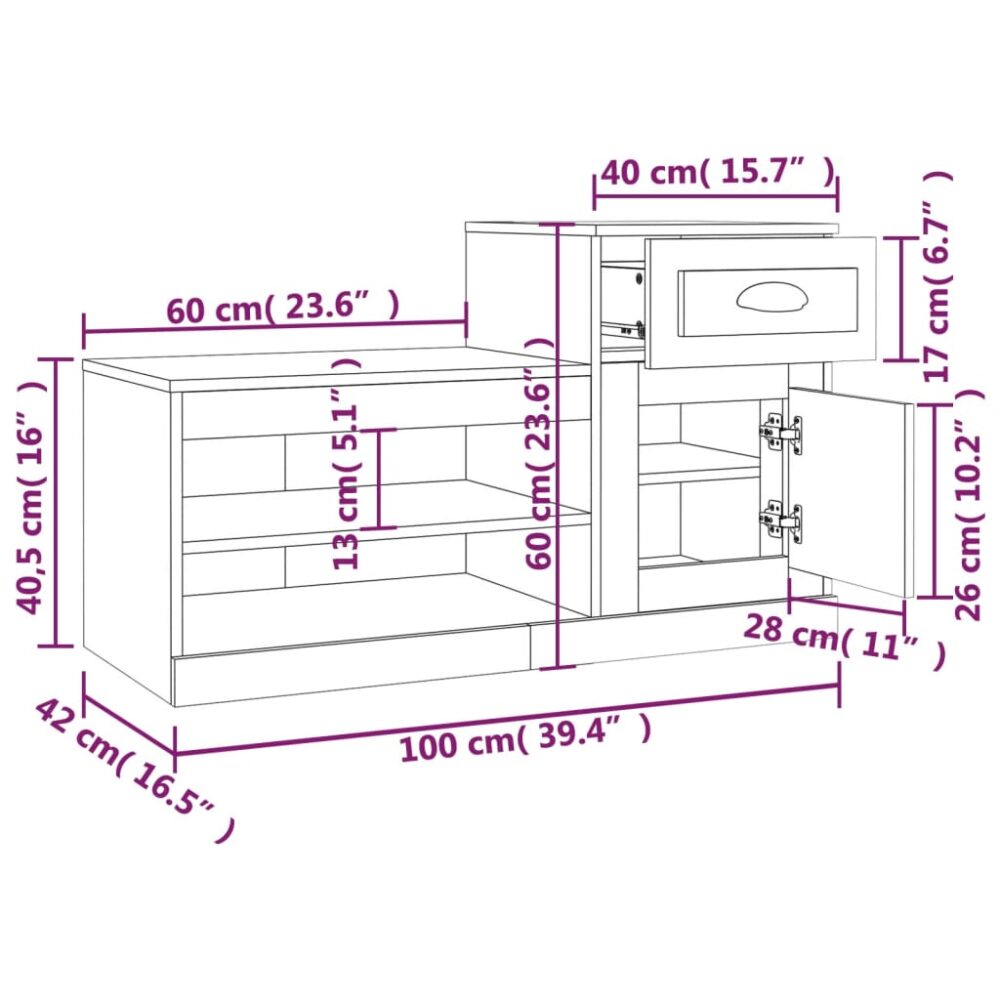Sapateira 100x42x60 cm derivados de madeira branco brilhante - PORTES GRÁTIS