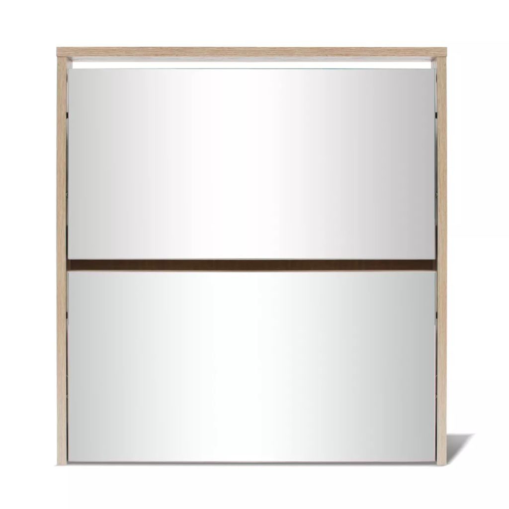 O organizador espelhado de sapatos tem duas gavetas de puxar, cada uma das quais pode acomodar 3 a 4 pares de sapatos. A sapateira é montada diretamente na parede. Este armário de hall forte e durável é feito de materiais de alta qualidade, tornando-o um lugar altamente prático para armazenar os seus sapatos com estilo e sem desorganização.