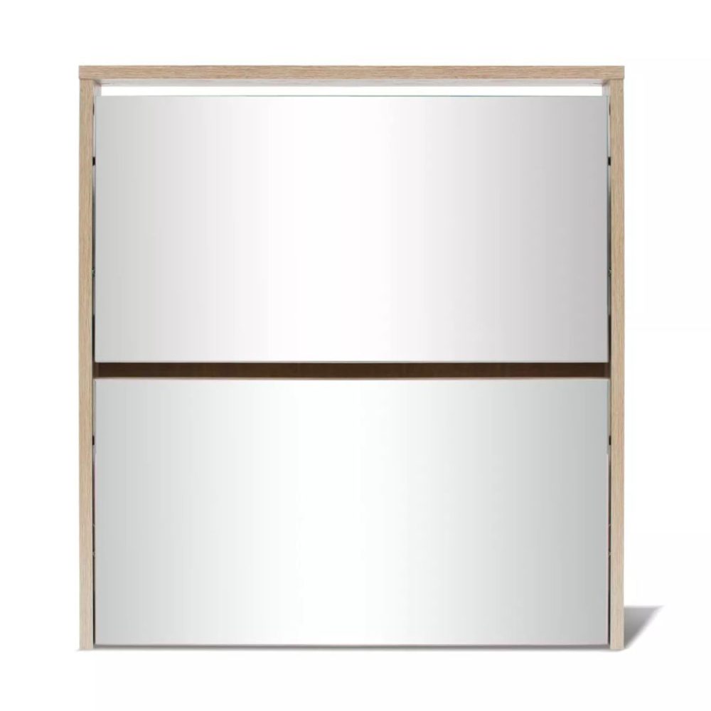 O organizador espelhado de sapatos tem duas gavetas de puxar, cada uma das quais pode acomodar 3 a 4 pares de sapatos. A sapateira é montada diretamente na parede. Este armário de hall forte e durável é feito de materiais de alta qualidade, tornando-o um lugar altamente prático para armazenar os seus sapatos com estilo e sem desorganização.