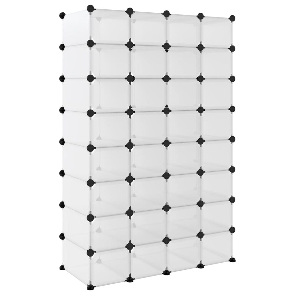 Esta sapateira oferece uma solução de arrumação excelente para a sua coleção de calçado favorita e outros acessórios. Material prático: a unidade de arrumação é feita com painéis de plástico em PP, que são resistentes à água e necessitam de baixa manutenção.Estrutura forte e estável: as estruturas de aço garantem robustez e estabilidade.Design simples e intuitivo: a sapateira pode ser montada convenientemente com o martelo de madeira incluído. Quando não estiver a utilizar, é fácil de separar os painéis e empilhá-los para poupar espaço.Mestre de arrumação: o amplo espaço de arrumação da sapateira facilita manter as coisas organizadas.Amplas aplicações: com uma espaço grande de arrumação e um design simples, o suporte de arrumação é uma solução de armazenamento excelente para a sua casa, dormitório ou escritório. Nota:A capacidade de carga máxima de cada cubo é 10 kg.