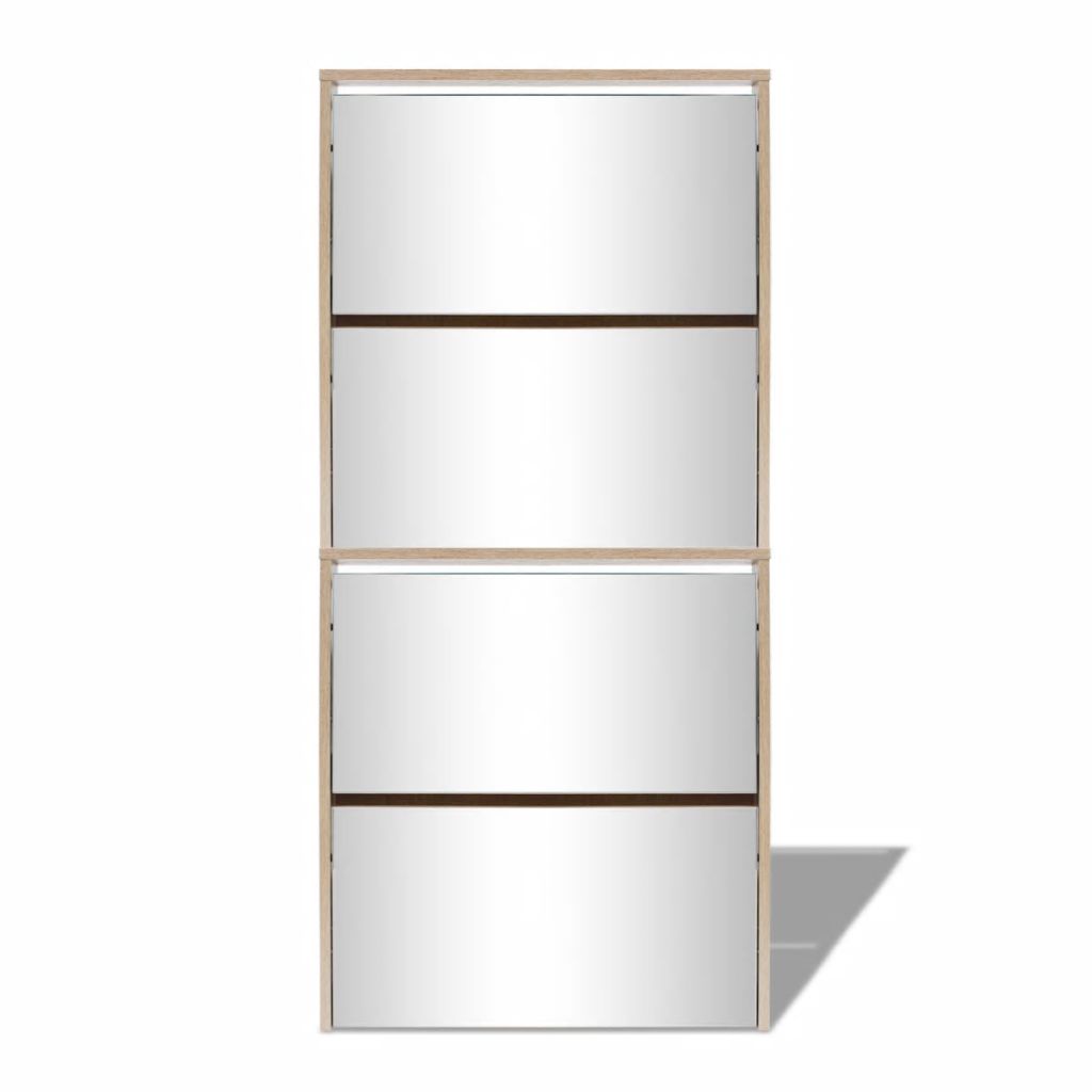 O organizador espelhado de sapatos tem quatro gavetas de puxar, cada uma das quais pode acomodar 3 a 4 pares de sapatos. A sapateira é montada diretamente na parede. Este armário de corredor forte e durável é feito de materiais de alta qualidade, tornando-o um lugar altamente prático para armazenar os seus sapatos com estilo e sem desorganização.