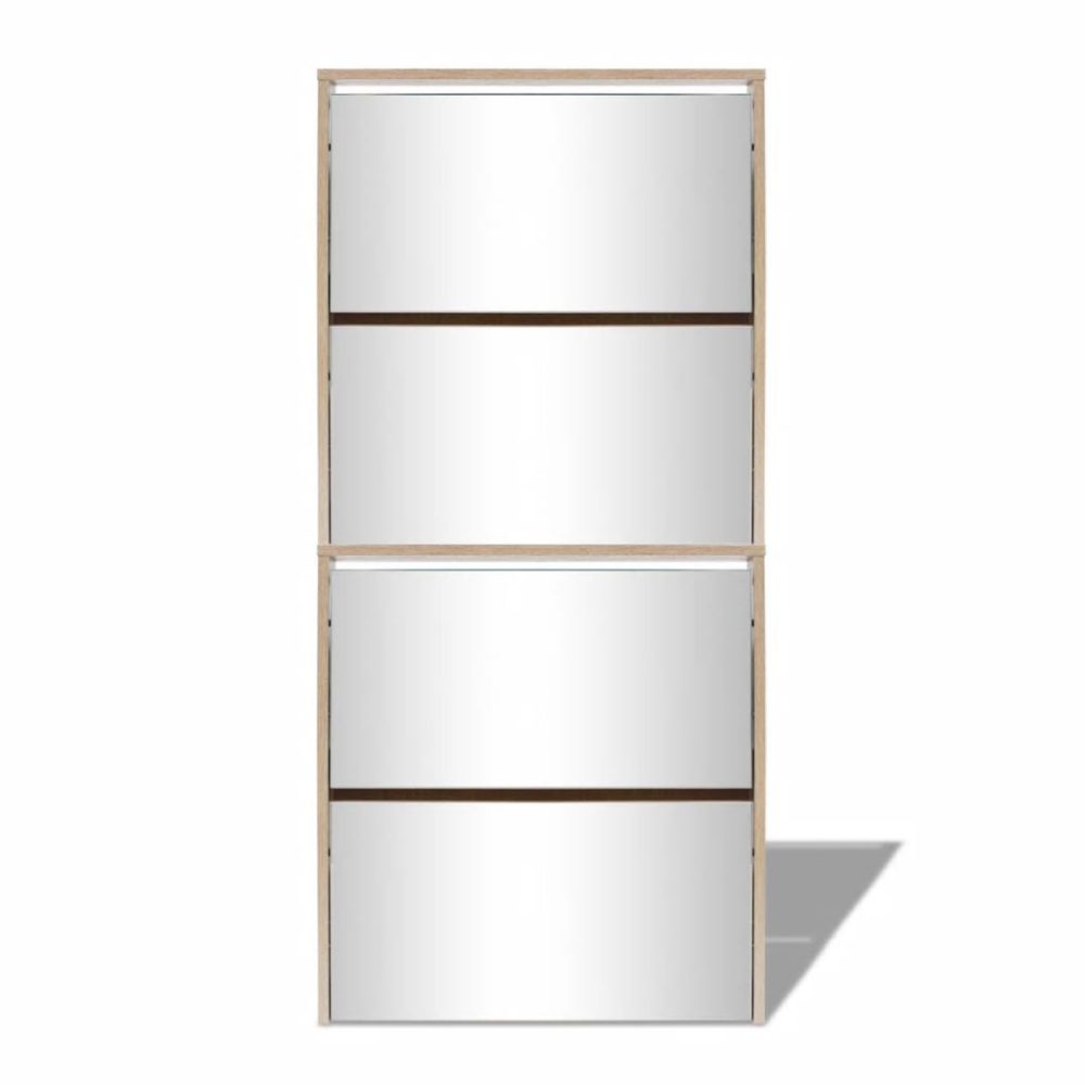 O organizador espelhado de sapatos tem quatro gavetas de puxar, cada uma das quais pode acomodar 3 a 4 pares de sapatos. A sapateira é montada diretamente na parede. Este armário de corredor forte e durável é feito de materiais de alta qualidade, tornando-o um lugar altamente prático para armazenar os seus sapatos com estilo e sem desorganização.