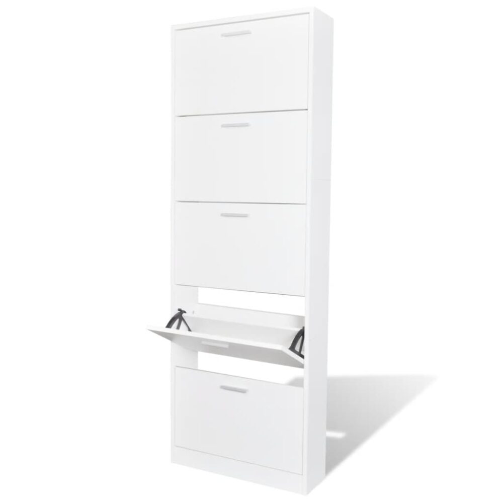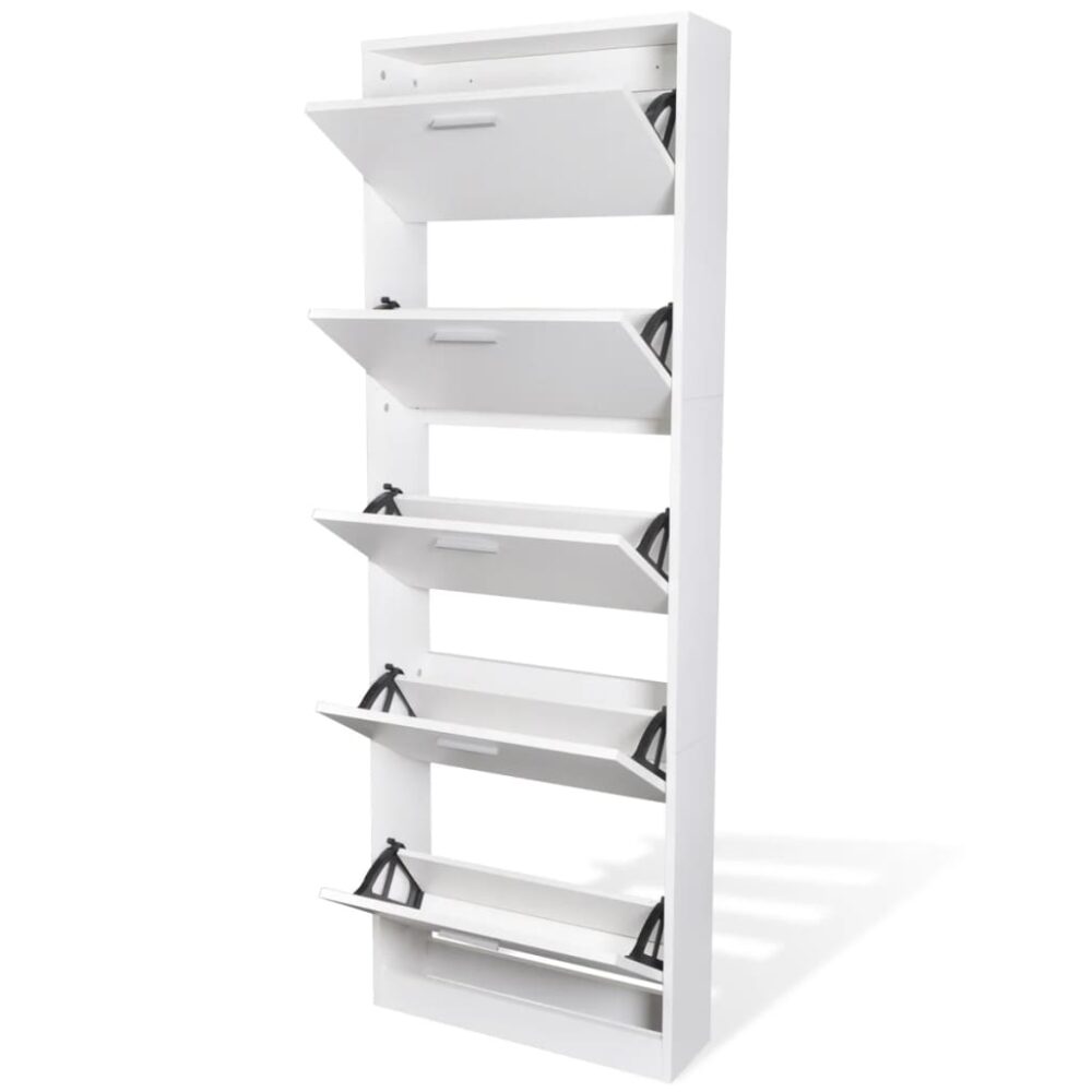 Este armário de sapatos em madeira tem 5 compartimentos de armazenamento e um design simples e elegante. Sapatos espalhados pelo chão não serão mais um problema. Até 15 pares de sapatos podem ser guardados nos 5 compartimentos livres de pó. Feito com madeira de alta qualidade, o nosso armário de sapatos é fácil de montar.